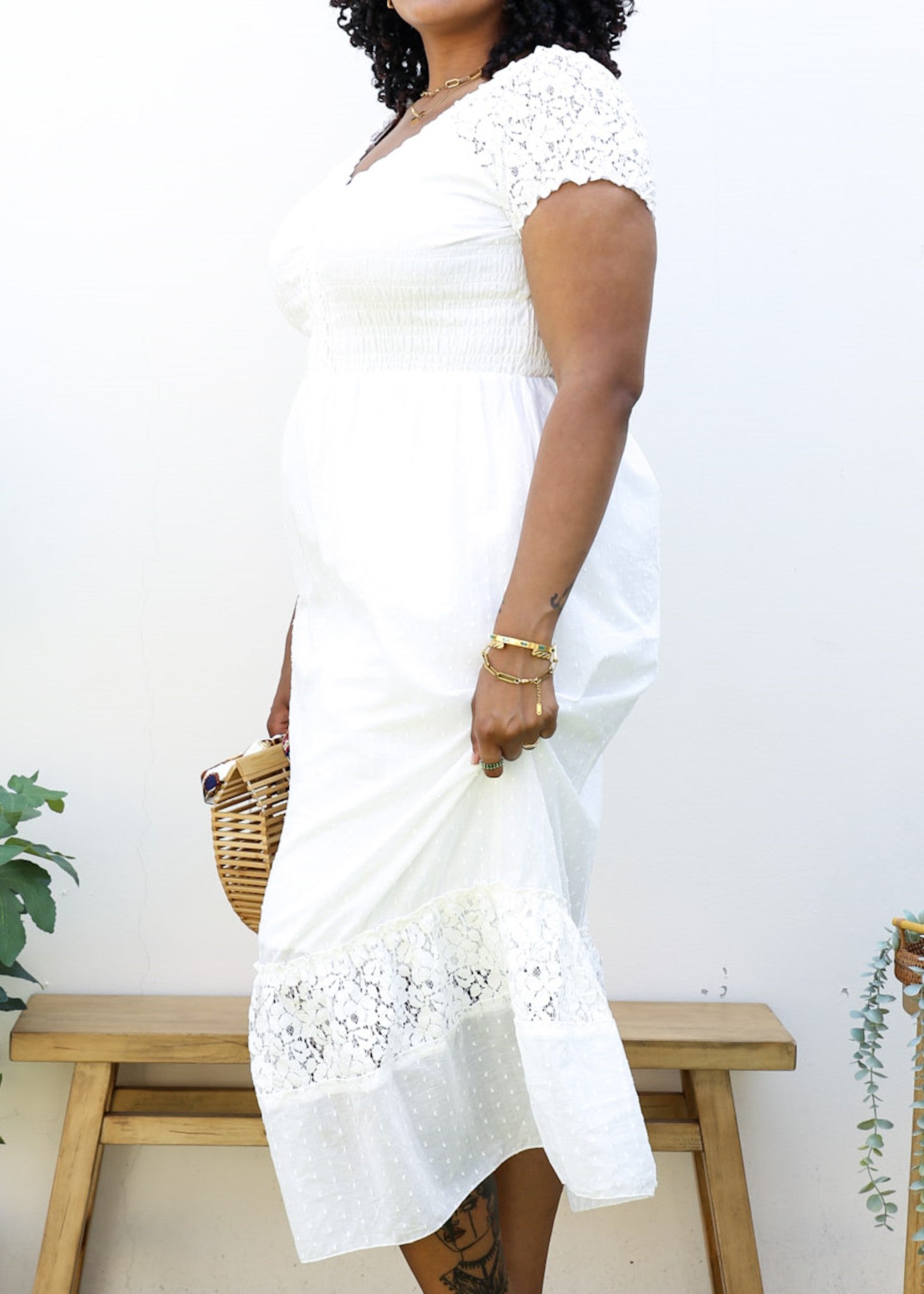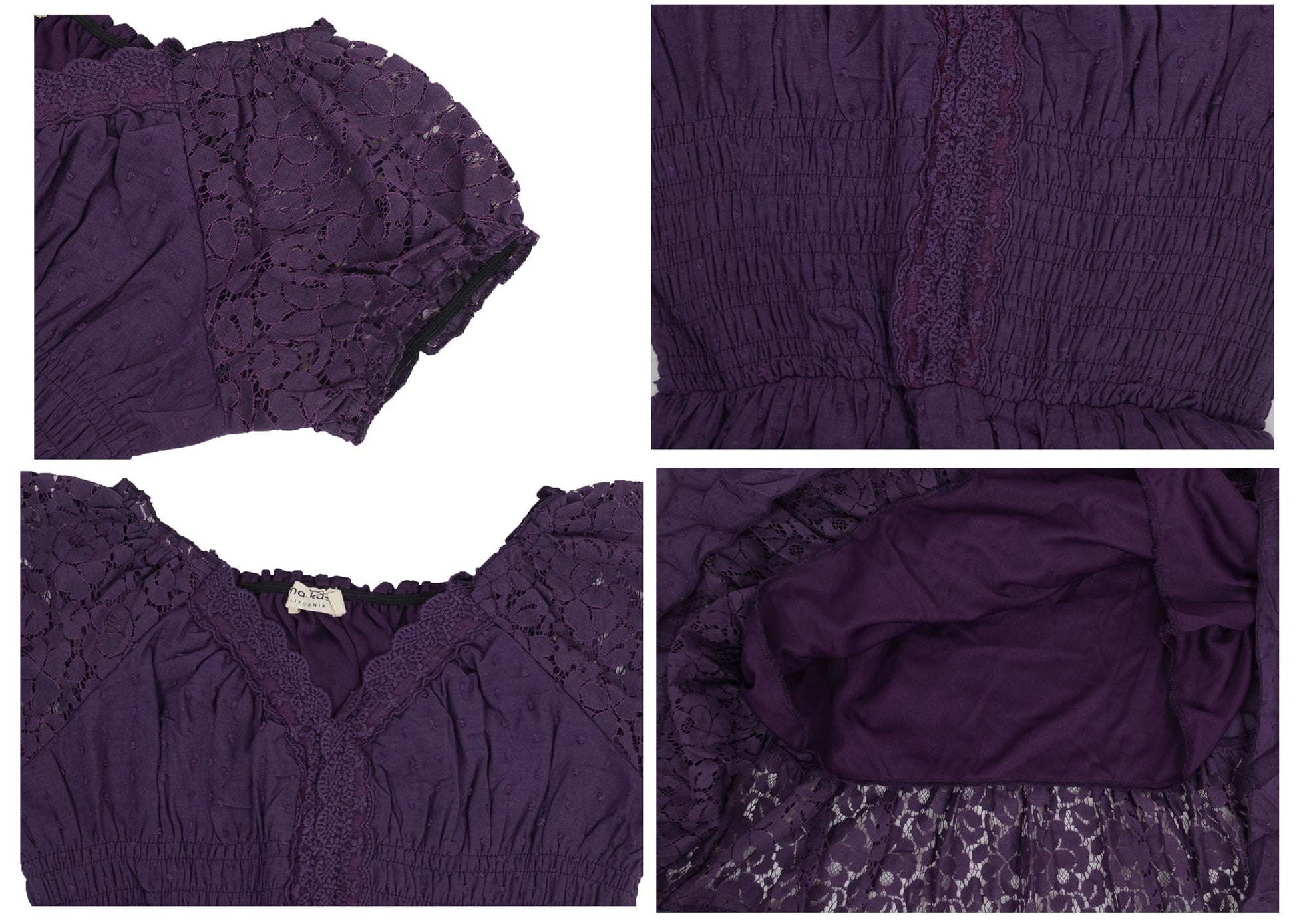 FEATURES -- Peasant dress has elastic soft neckline,which can be worn on and off the shoulder,elasticized/high/smocked waist ,cap sleeve, v neck, full length, lace flower trim detailing,bohemian style.Flattering and comfortable fit for all body types.