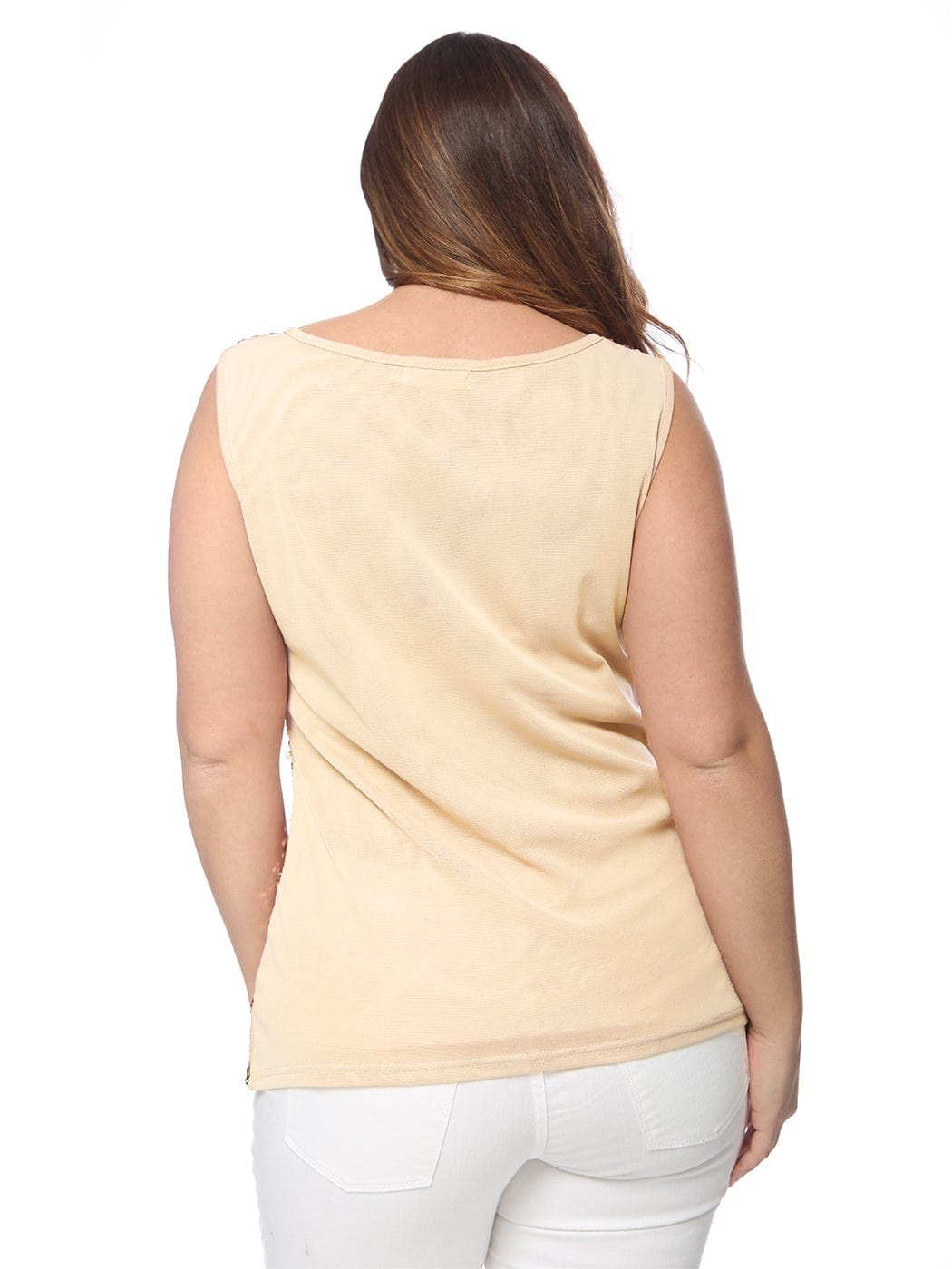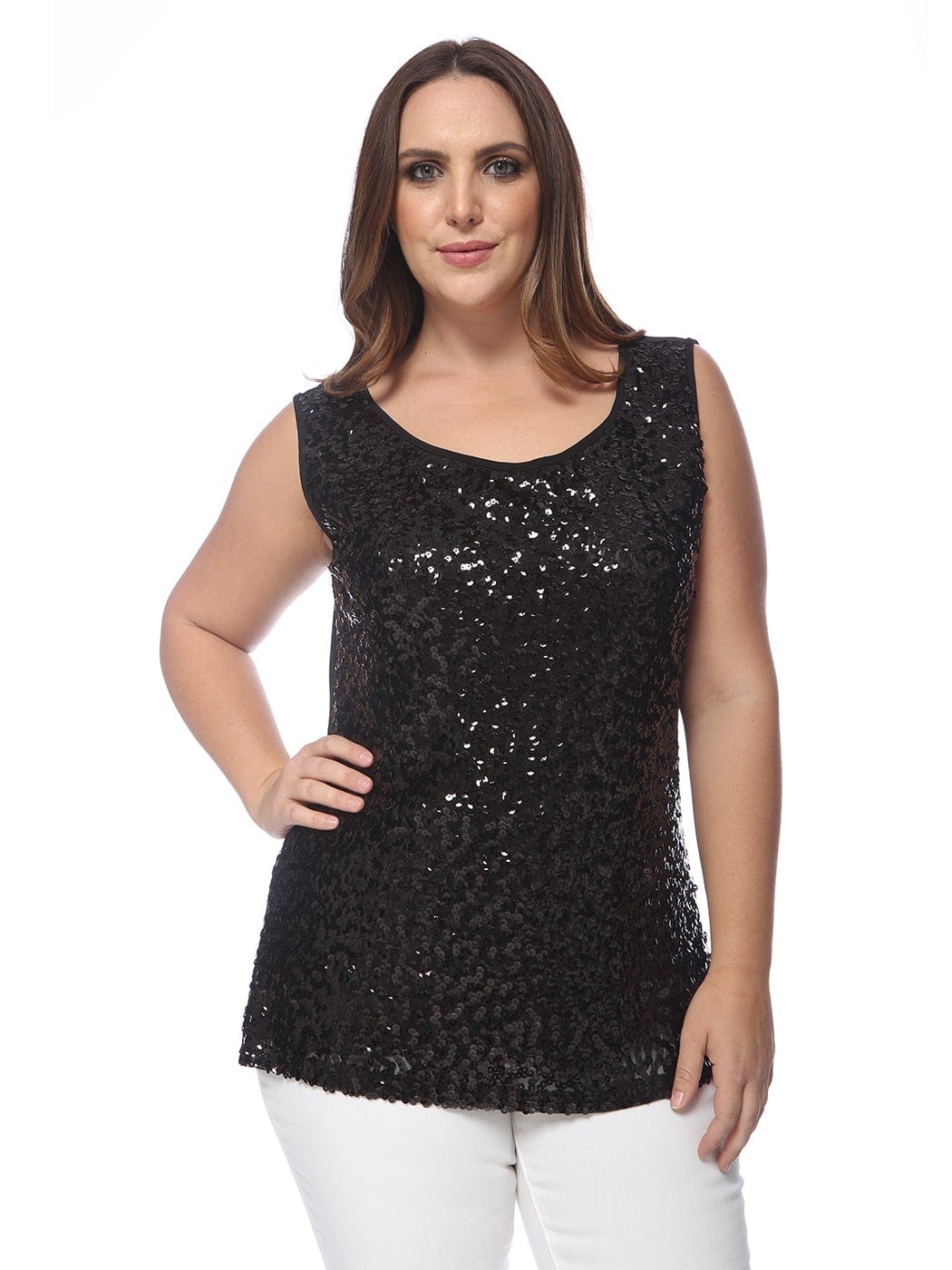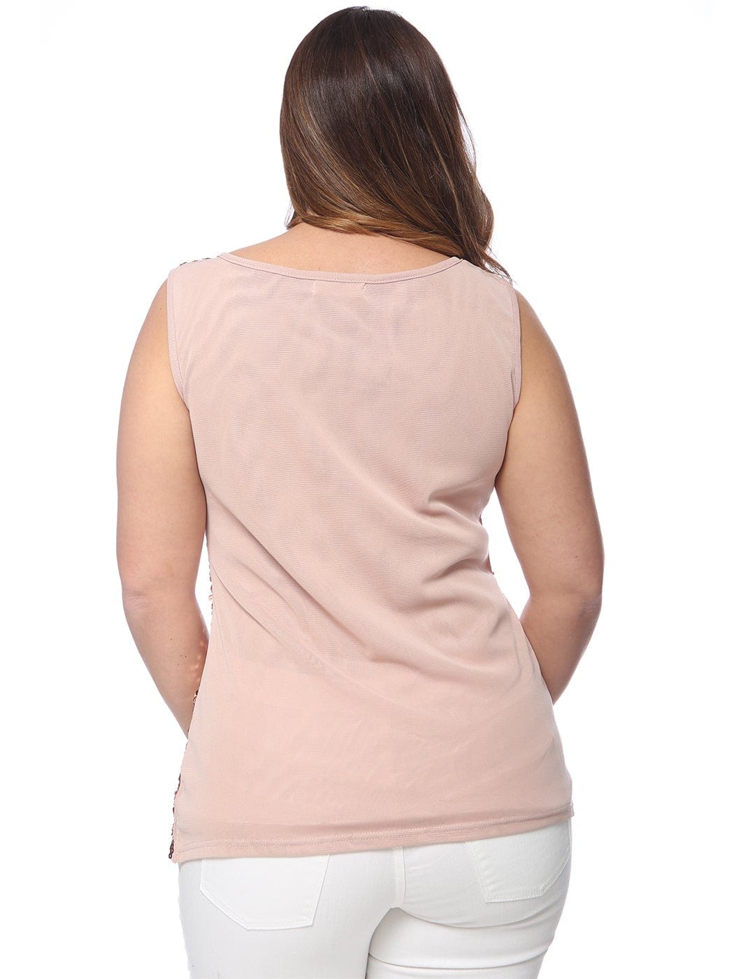- GET YOUR SPARKLE ON. This top is embellished with sequins in the front while keeping it simple in the back. This gives you the perfect amount of drama on an elegant top.