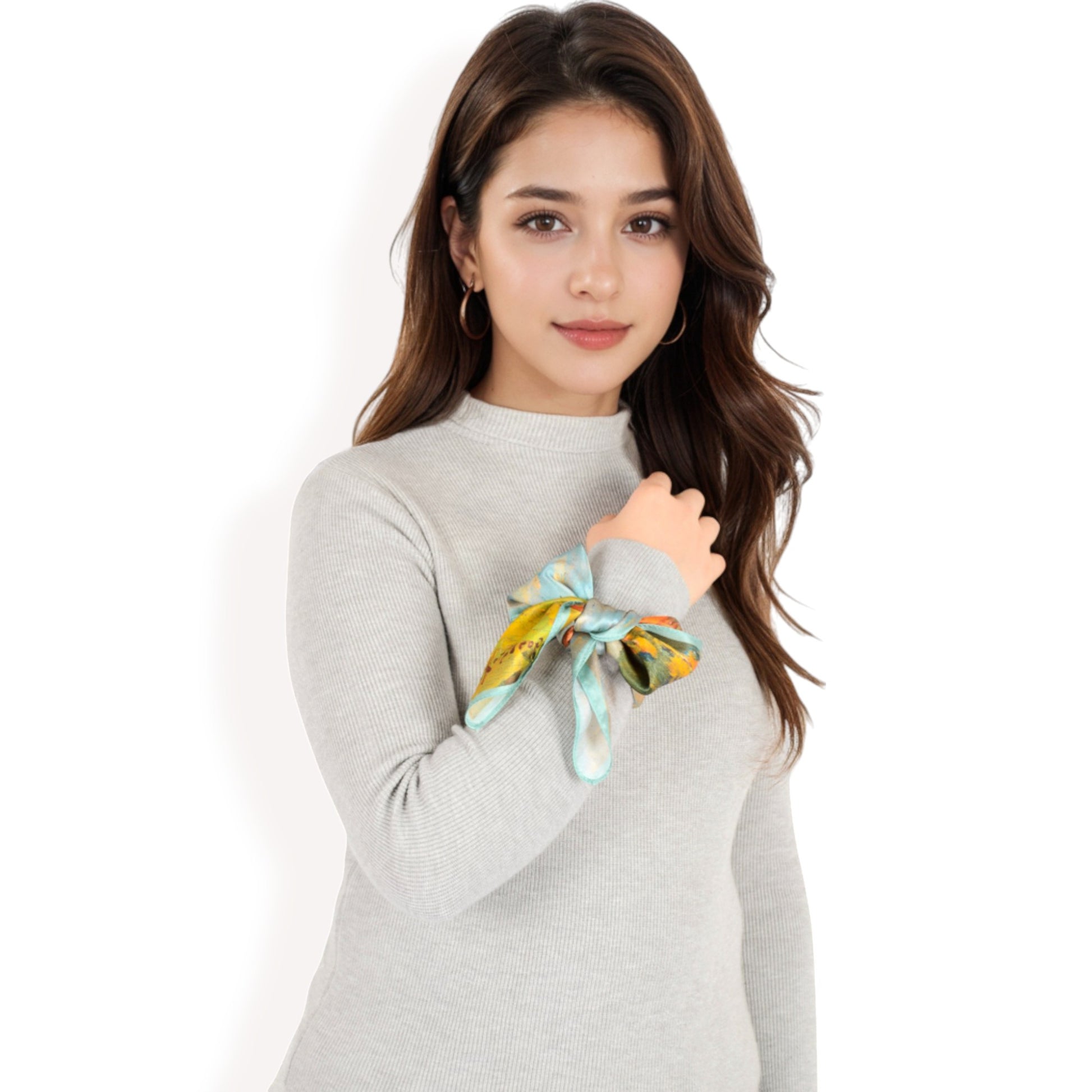 Elevate your accessory collection with these luxurious silk square scarves featuring a variety of vibrant designs. From elegant floral prints to bold abstract and chain patterns, each scarf exudes timeless sophistication and charm. The silky satin finish enhances the richness of the designs, making them perfect for adding a touch of glamour to any outfit. Whether tied around the neck, styled as a headscarf, or used to adorn a handbag, these versatile scarves offer endless styling possibilities. Crafted with high-quality silk for a smooth, lightweight feel, they ensure both style and comfort. Add a splash of personality to your wardrobe with these stunning, multifunctional accessories.