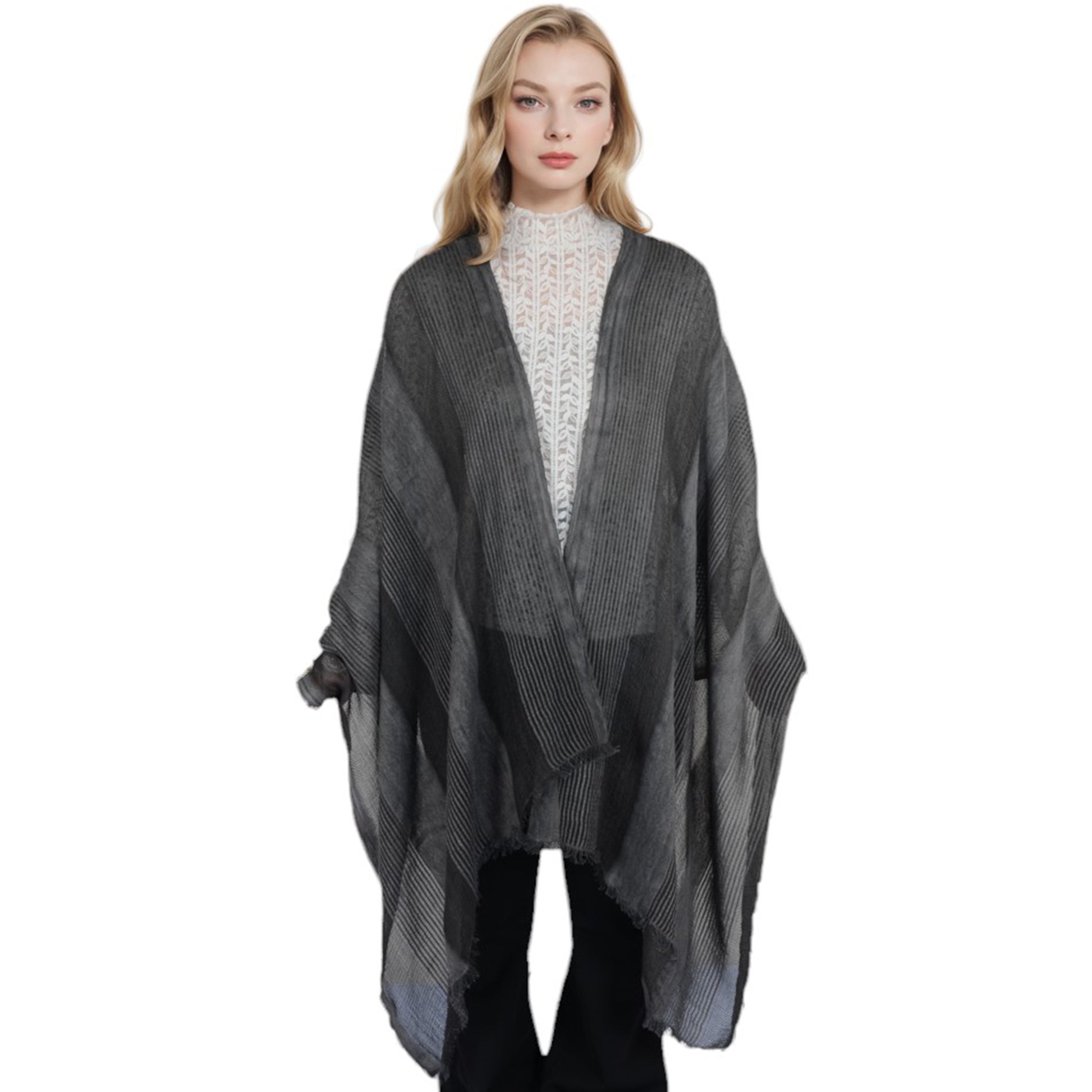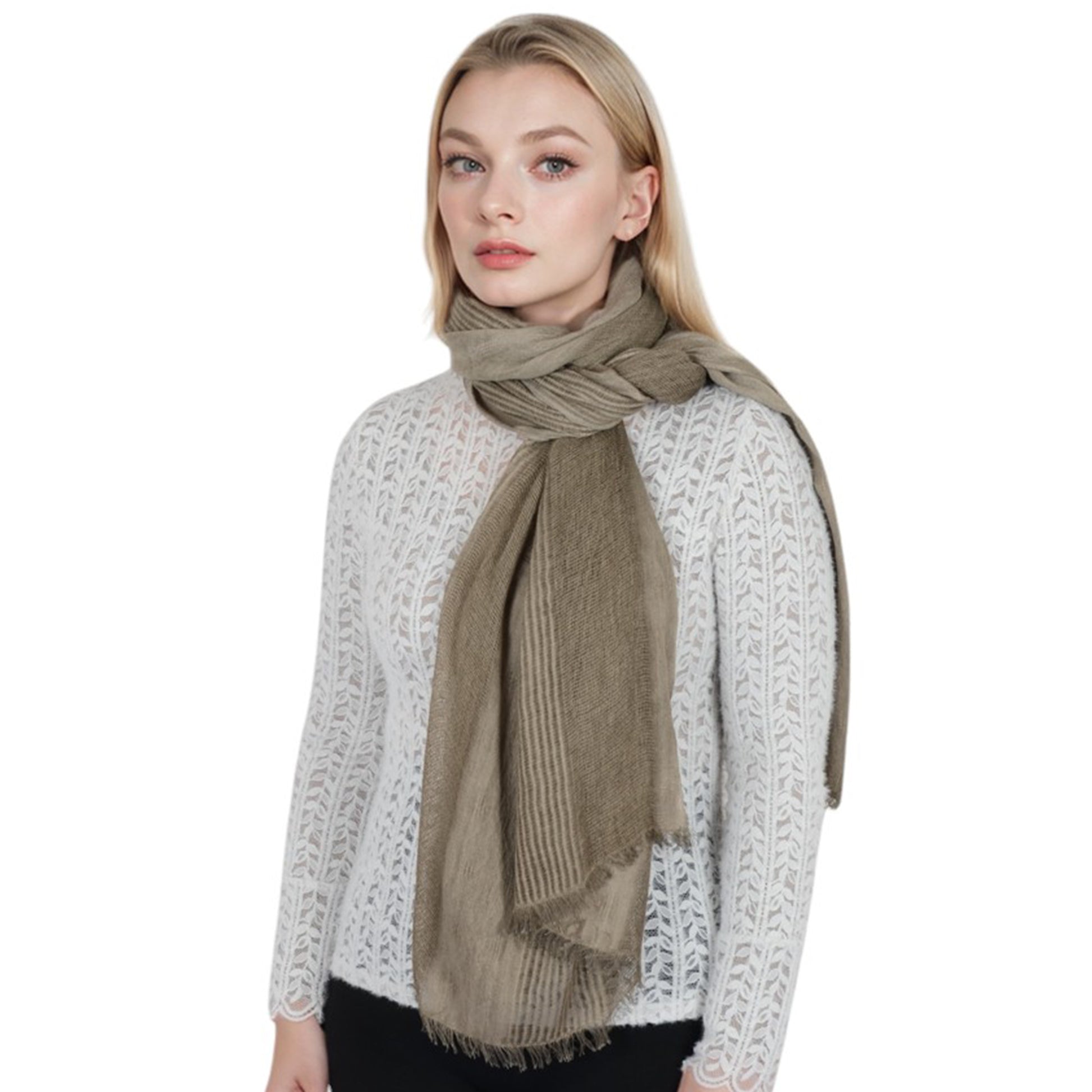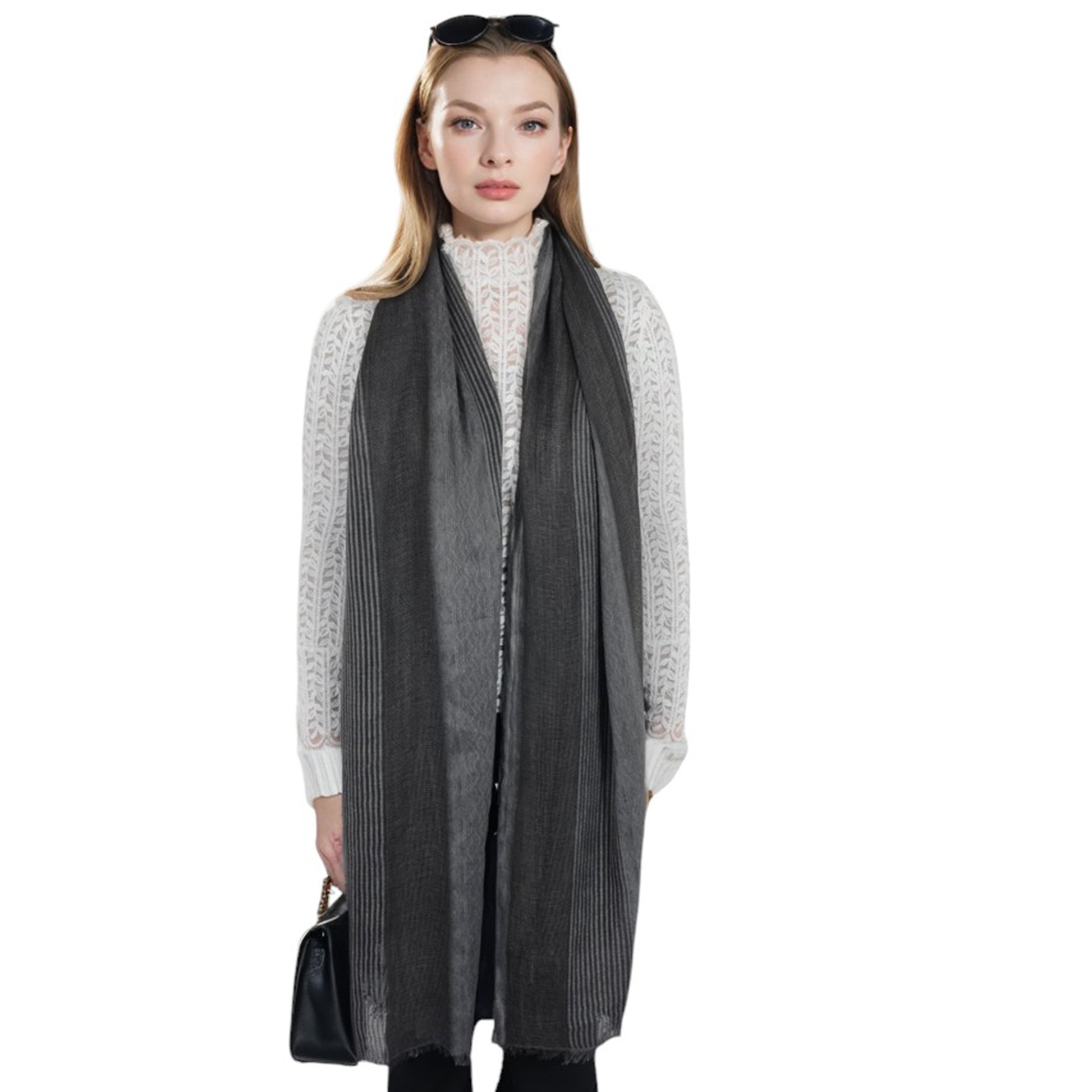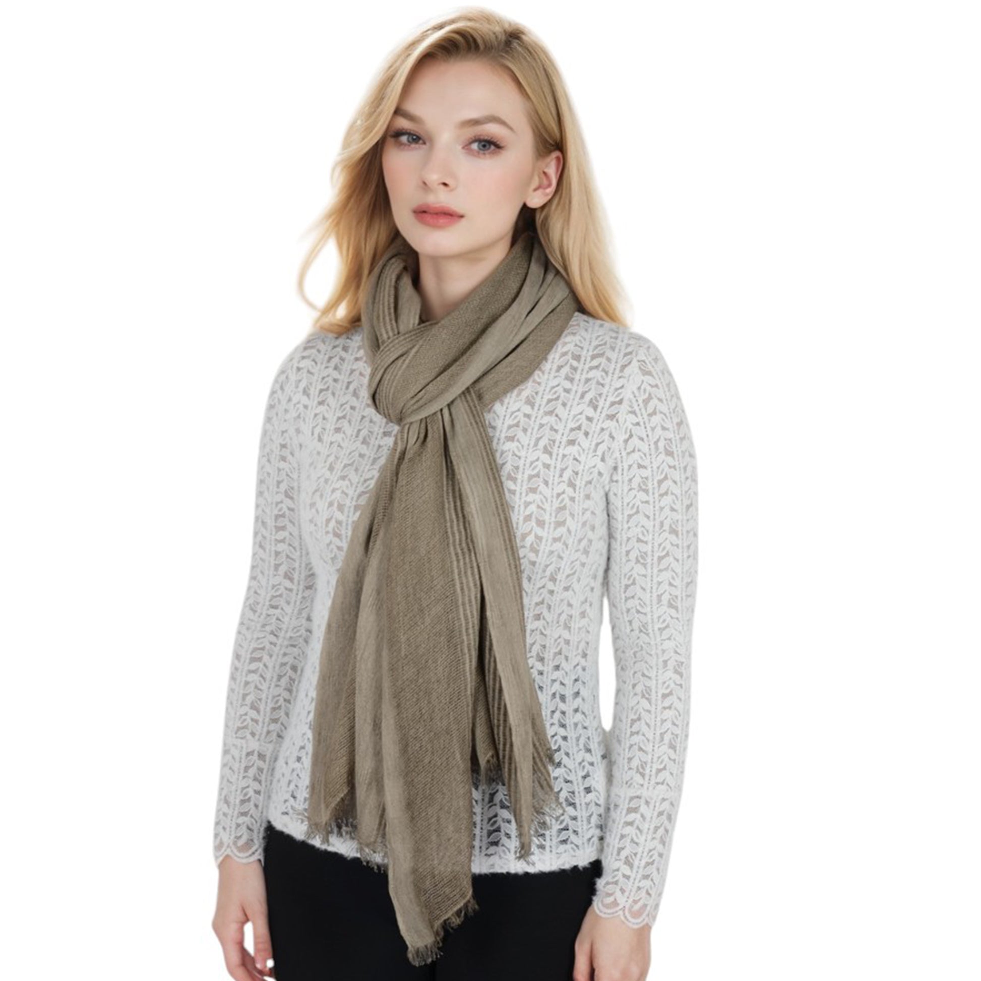 This textured stripe scarf combines timeless elegance with modern versatility, featuring a chic blend of stripe patterns and subtle woven details. Crafted from lightweight yet warm fabric, this scarf offers exceptional softness and comfort for everyday wear. The fringed edges add a touch of sophistication, making it ideal for both casual and formal outfits. Whether layered over a coat or paired with a sweater, this scarf is a must-have accessory for staying cozy and chic.