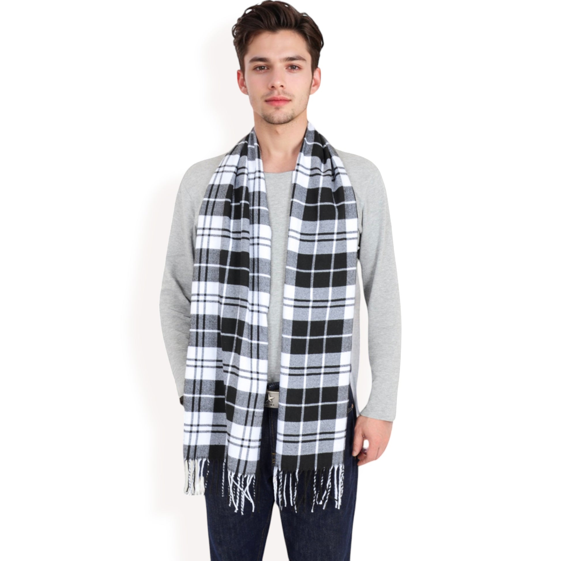 Anna-Kaci Men's Classic Plaid Patterned Scarf with Fringed Edges Soft Lightweight Winter Accessory for Timeless Style