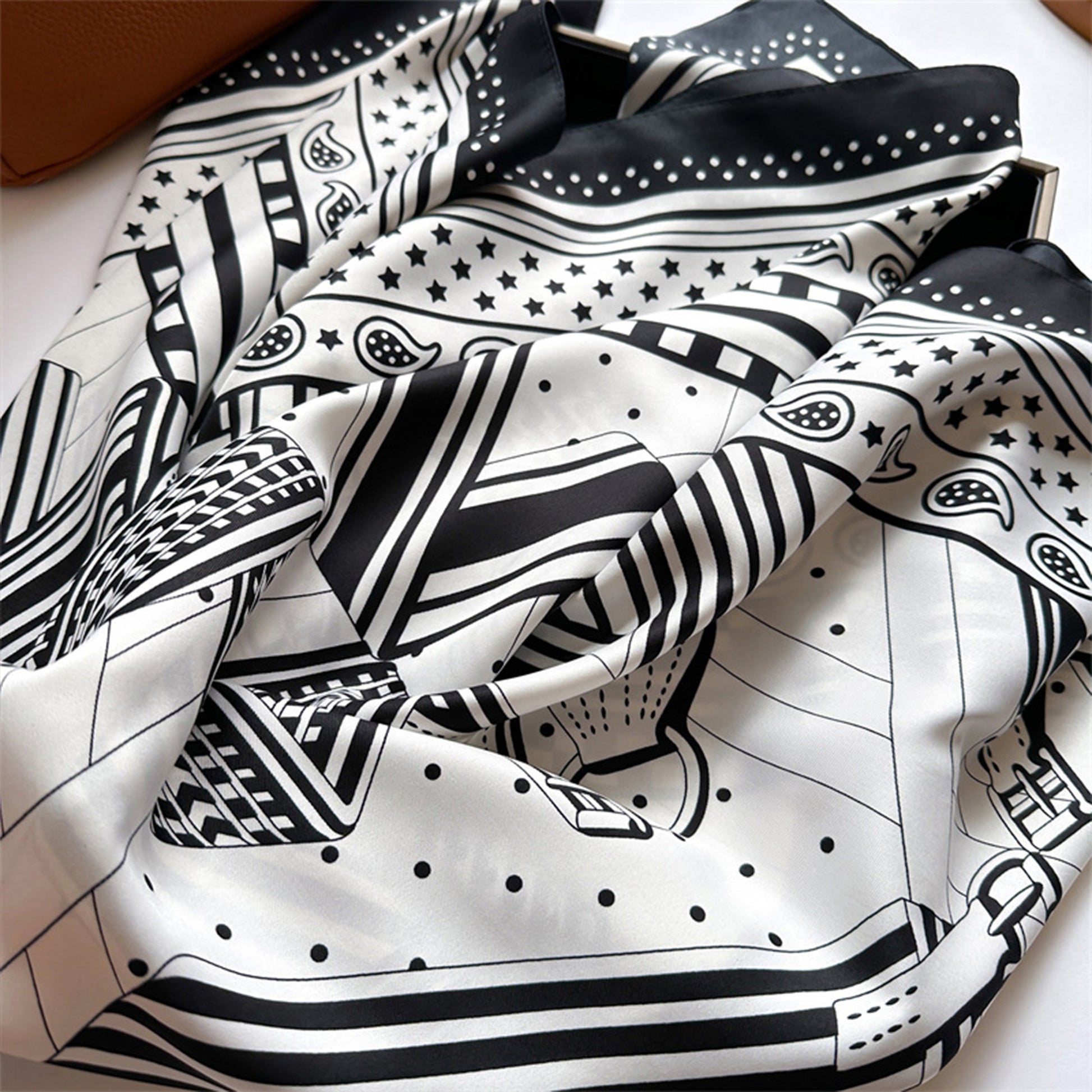 Add a touch of sophistication to your wardrobe with this satin square scarf featuring a striking geometric design. The smooth, lightweight satin fabric offers a luxurious feel, while its generous size provides endless styling possibilities. Perfect for both casual outfits and formal attire, this scarf combines contemporary style with timeless elegance.