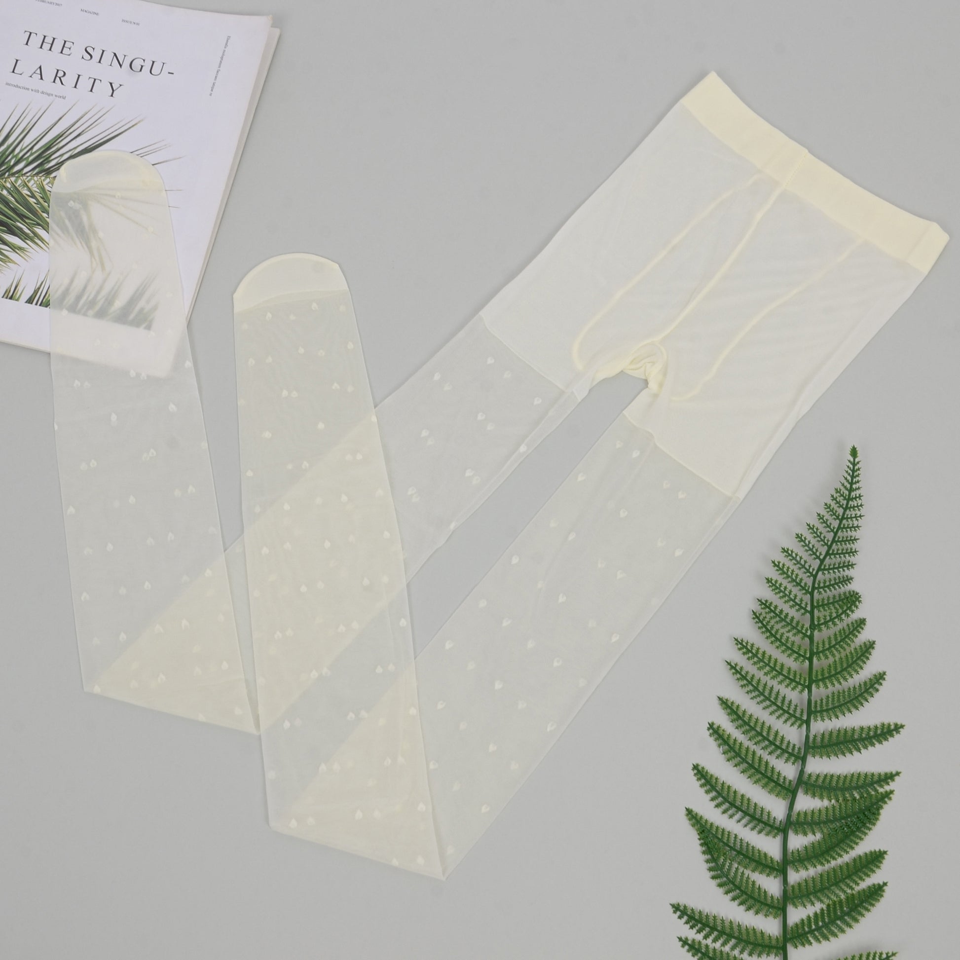 Anna-Kaci Sheer Heart Pattern Tights with Delicate Allover Embroidery