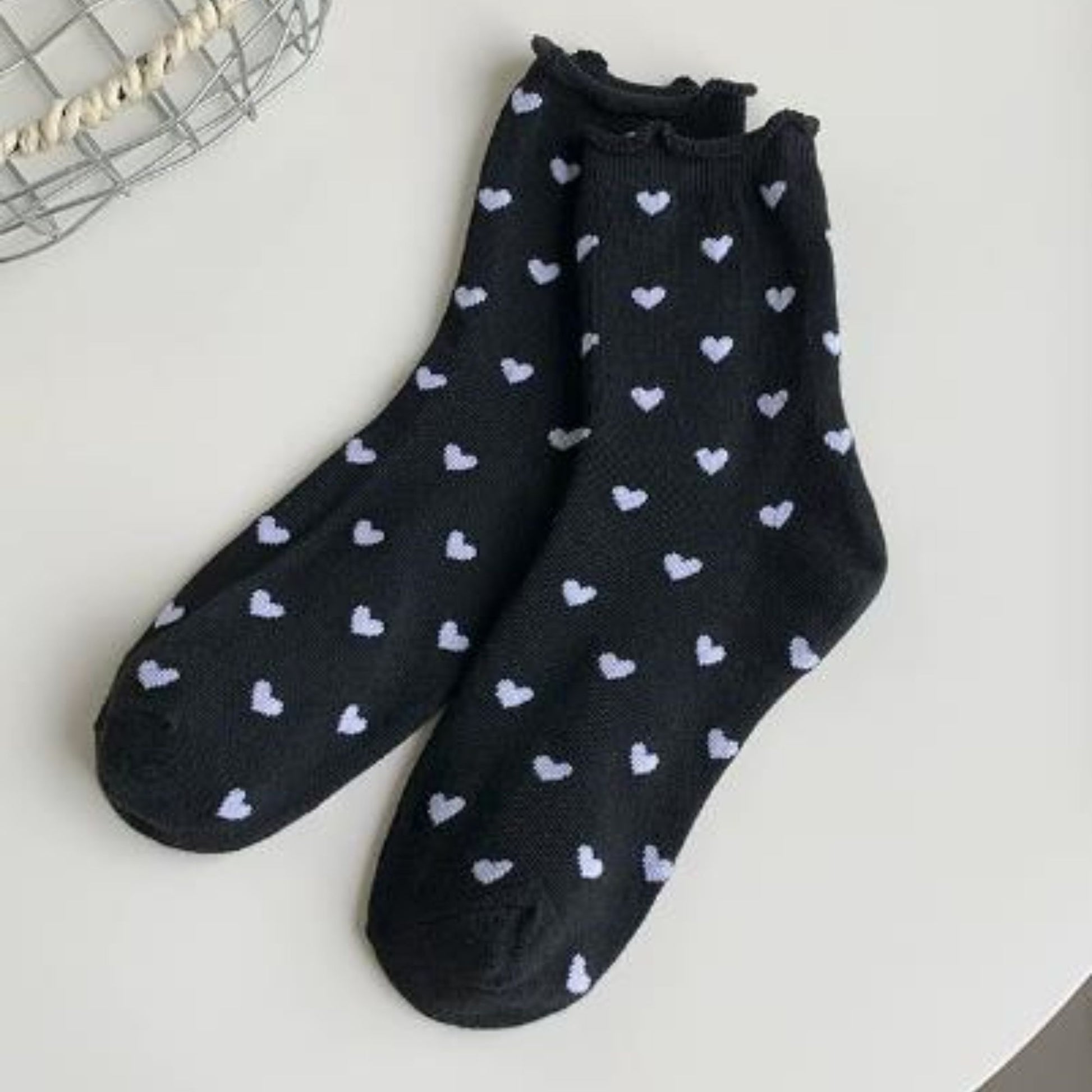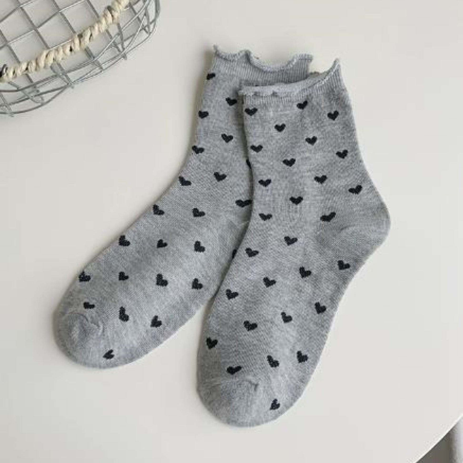 The Anna-Kaci Women's Ankle Socks feature a playful allover heart print that adds a sweet, charming touch to your everyday essentials. Made from a soft, stretchy knit fabric, these socks offer a snug yet breathable fit. The ribbed cuff helps keep them comfortably in place throughout the day. Whether you¡¯re lounging at home or heading out, these socks bring a fun pop of personality to your outfit.