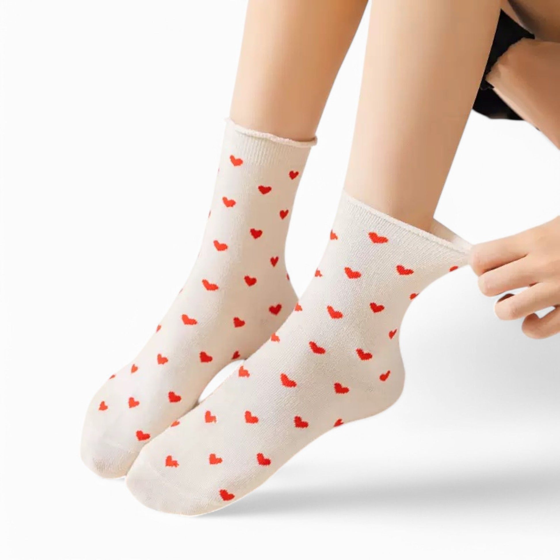 Anna-Kaci Women's Ankle Socks with Allover Heart Print and Soft Ribbed Cuff Trim