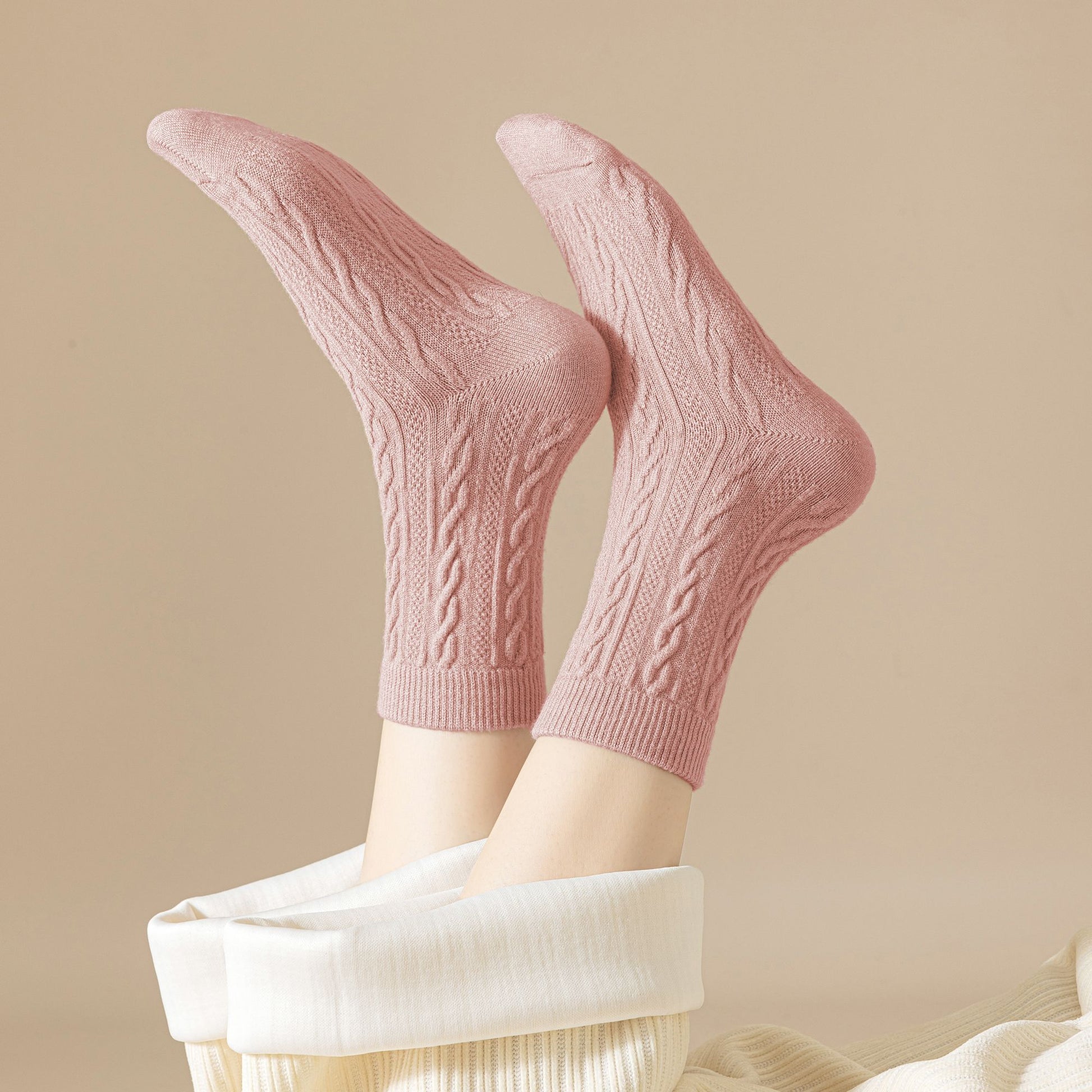 Indulge in comfort and style with our Classic Cream Cable-Knit Women's Crew Socks. These socks showcase a beautiful cable-knit pattern, a timeless design element that exudes elegance and warmth. The soft, colored cotton not only looks great but also feels luxurious against your skin.