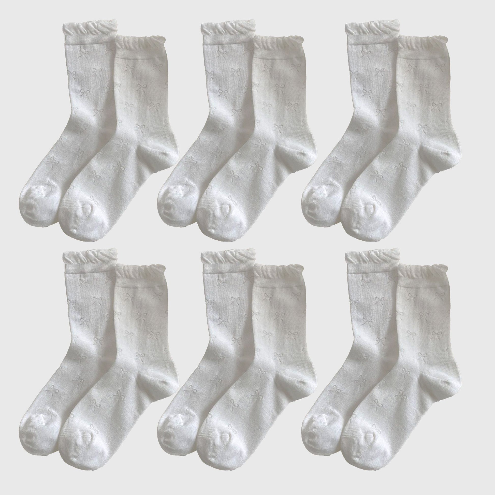 Anna-Kaci Women's Bow-Patterned Ruffle-Cuff Ankle Socks 6pk