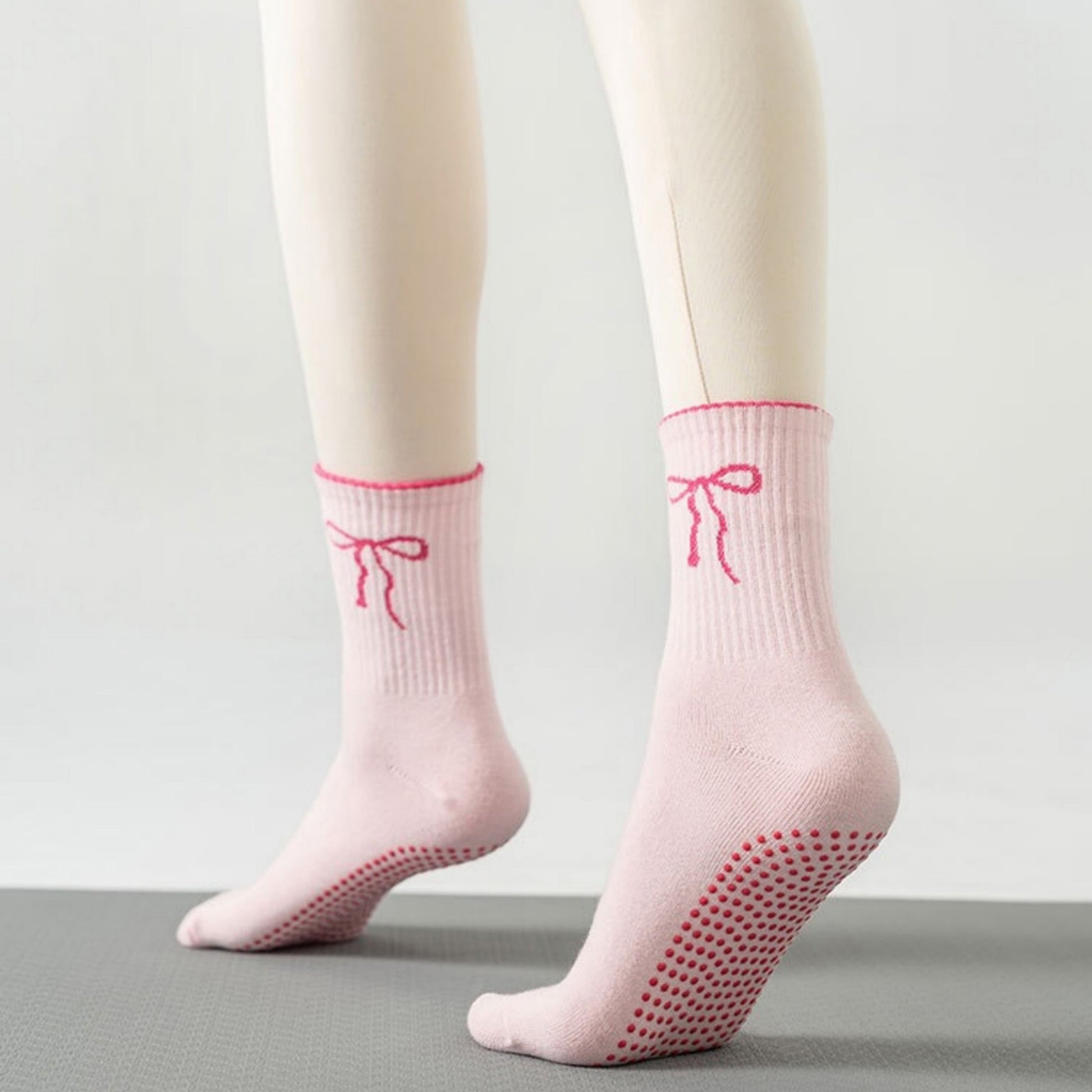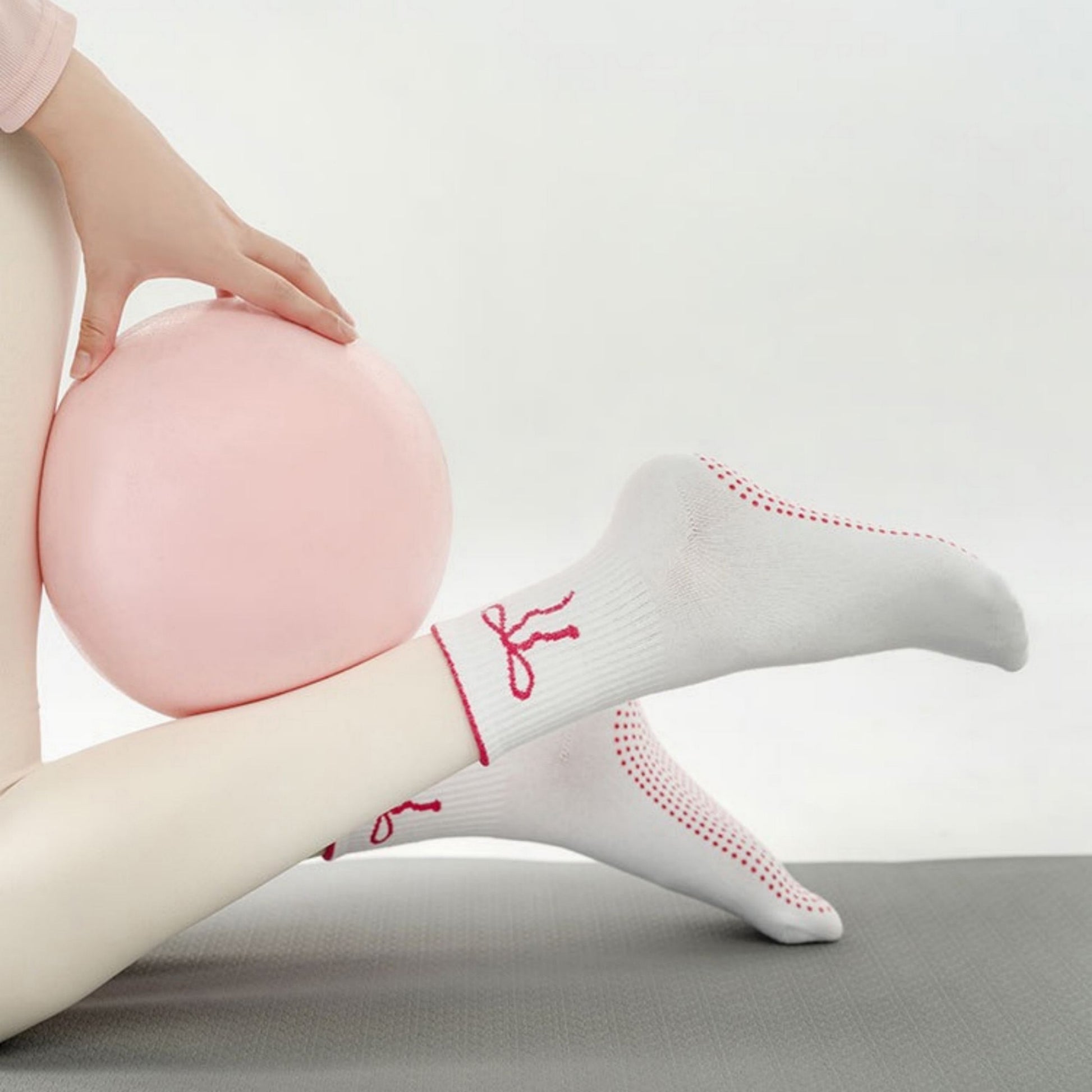 Anna-Kaci Women's 2-Pack Non-Slip Grip Socks with Bow Embroidery and Anti-Skid Dot Soles