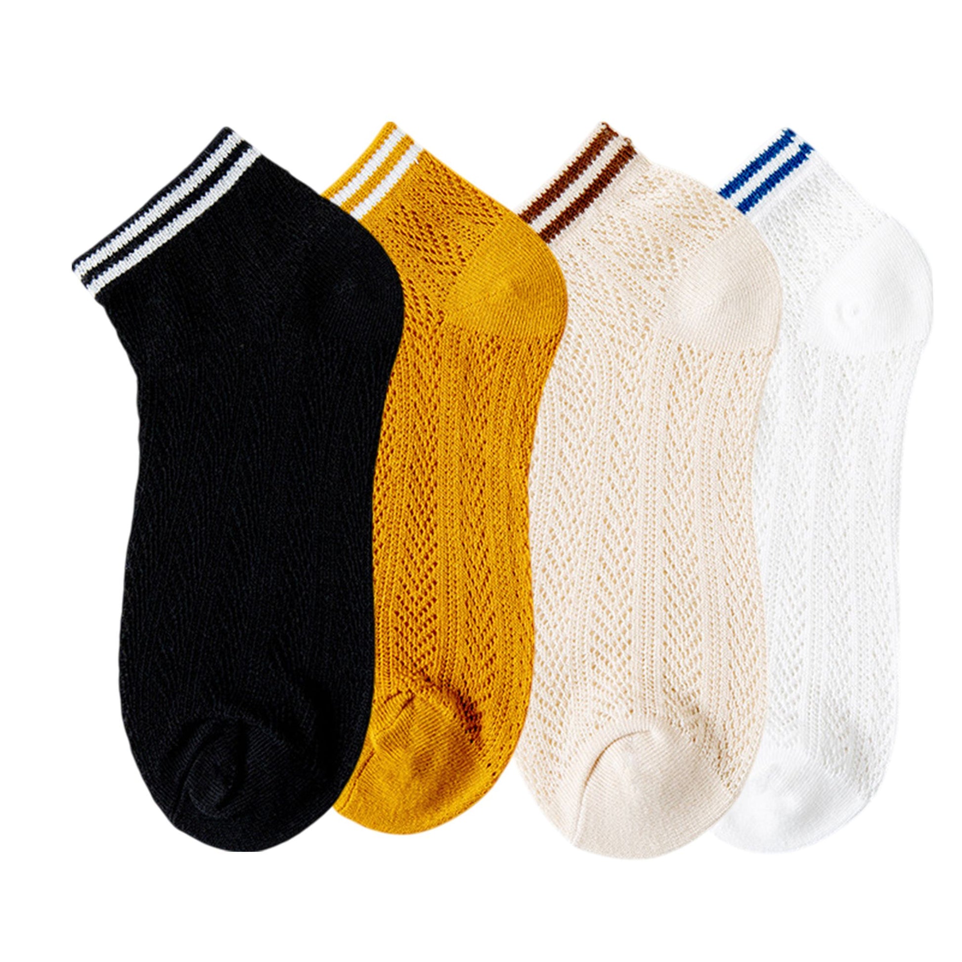 Anna-Kaci Women's 4-Pair Pack Lightweight Mesh Ankle Socks with Striped Cuffs Breathable Knit Texture