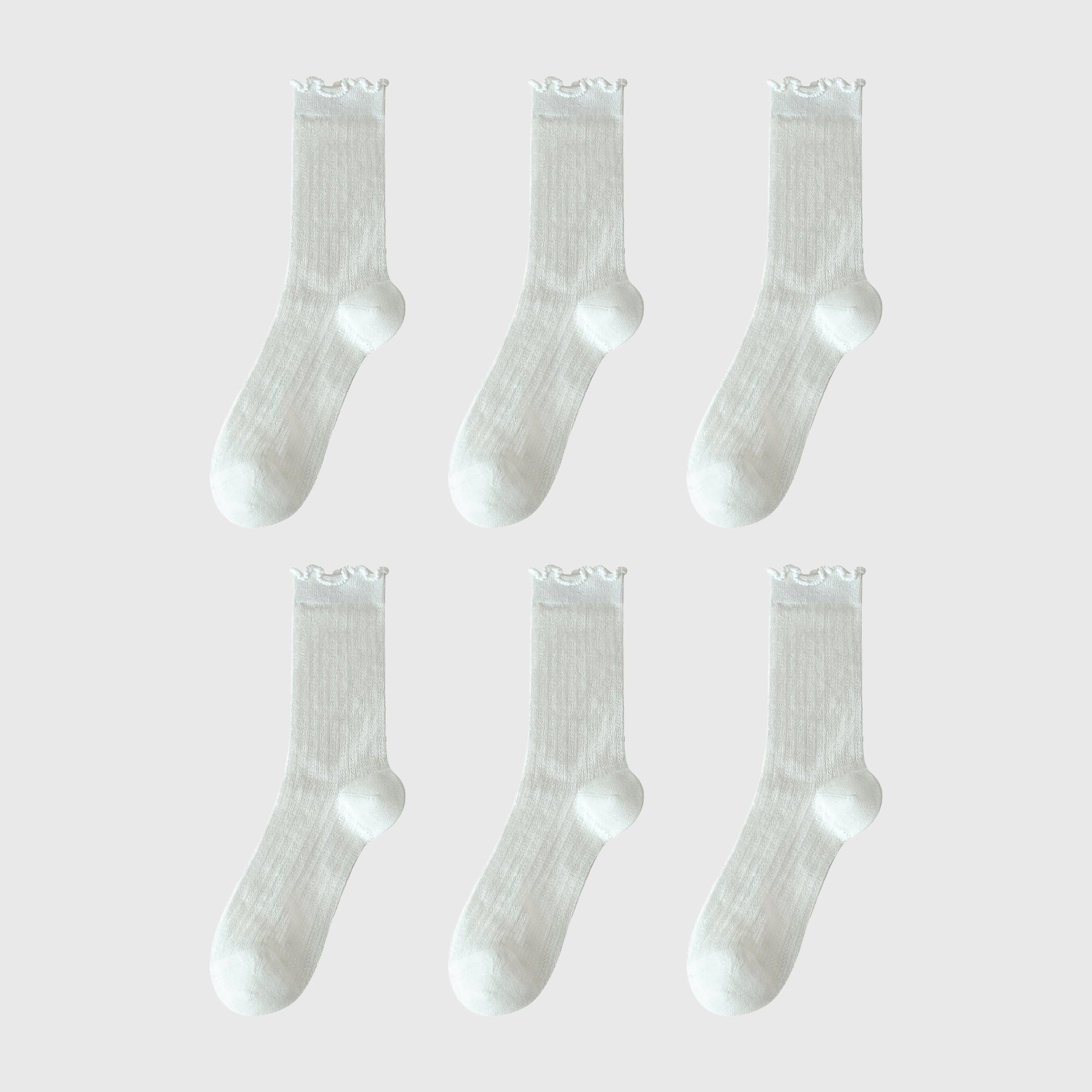 Anna-Kaci Sheer Ruffle-Trimmed Ankle Socks 6pk