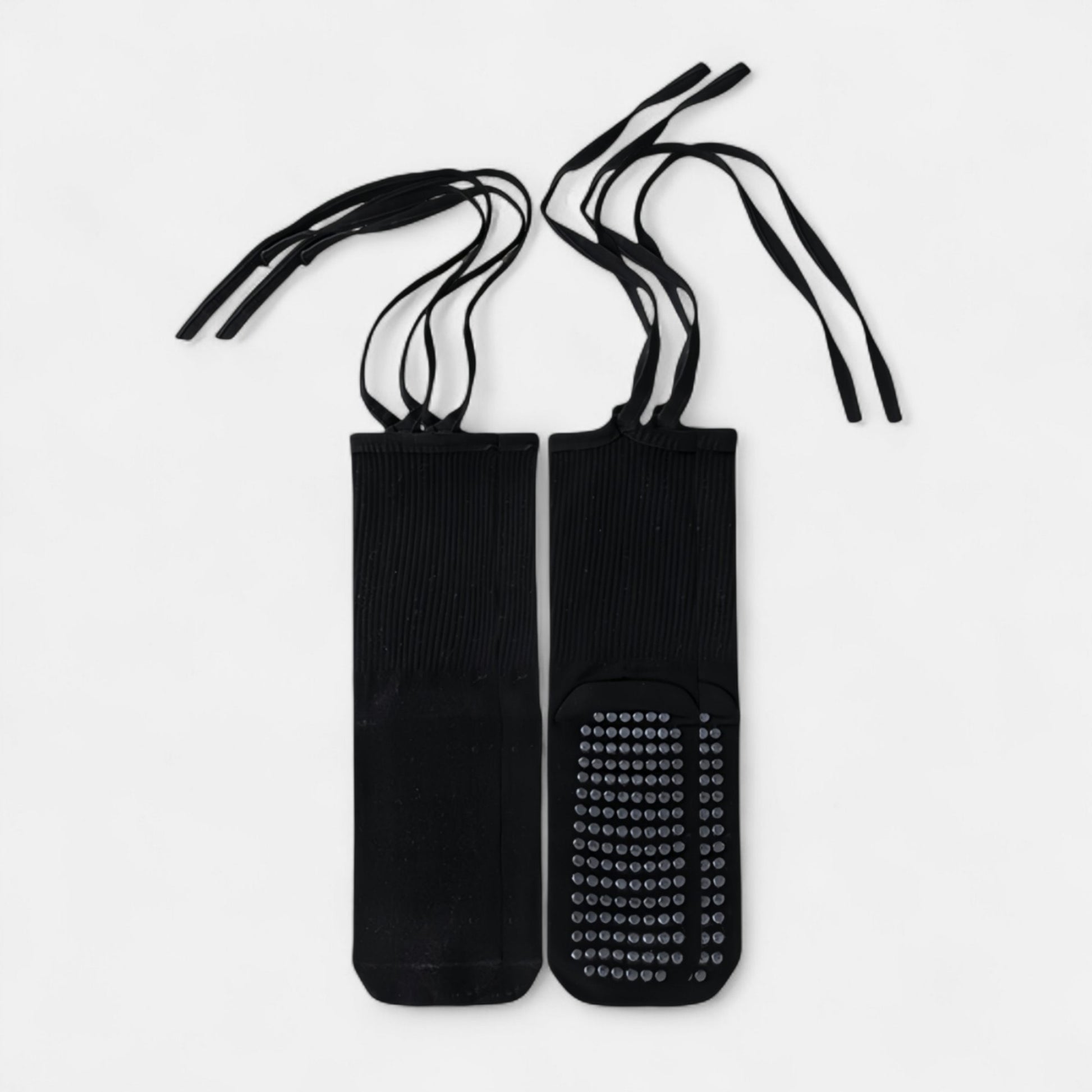 Anna-Kaci Women's 2-Pack Over-the-Calf Grip Socks combine elegance and function with ballet-inspired ribbon ties and anti-slip soles. Designed to stay in place with a snug ribbed fit, these socks offer added support and grip for pilates, barre, and yoga sessions. Reinforced toes and cushioned soles ensure long-lasting comfort. Perfect for elevating your activewear while staying grounded during movement.