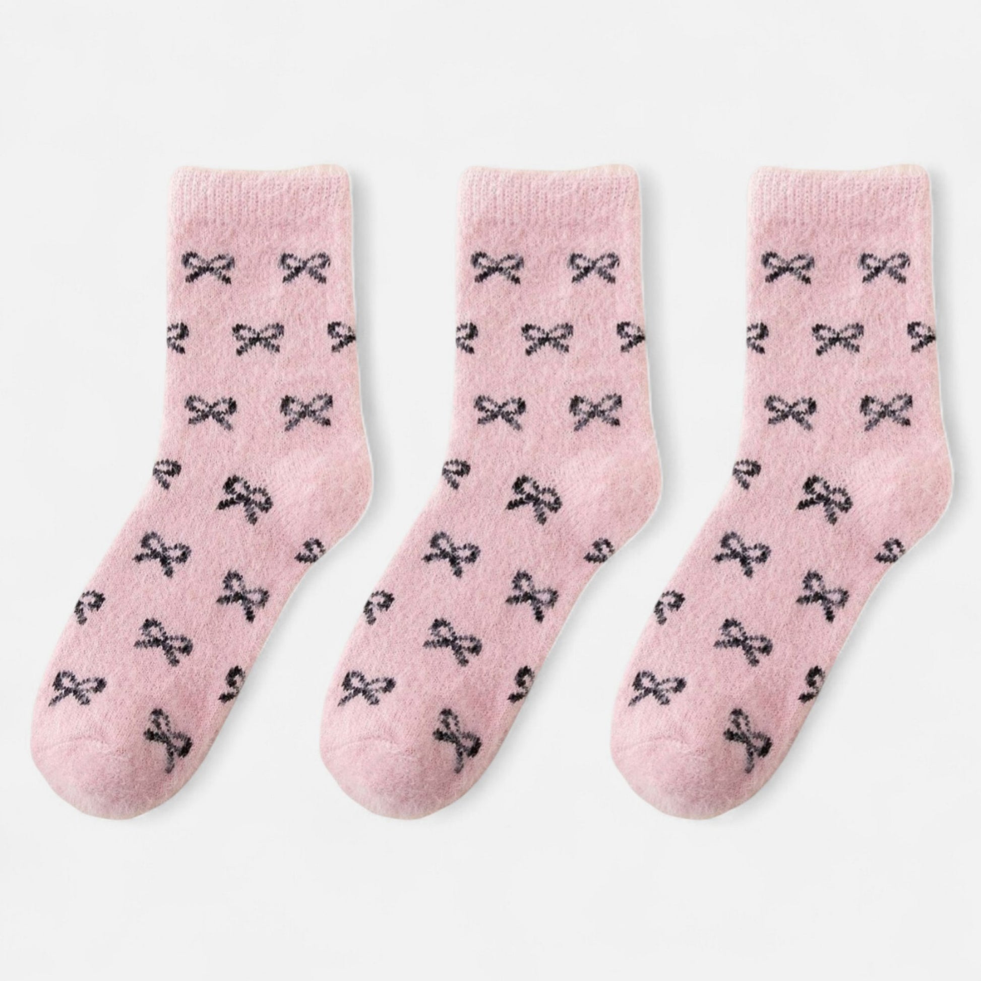 Anna-Kaci Women's 3-Pack Fuzzy Crew Socks with Allover Bow Pattern Soft Cozy Knit Winter Sock Set