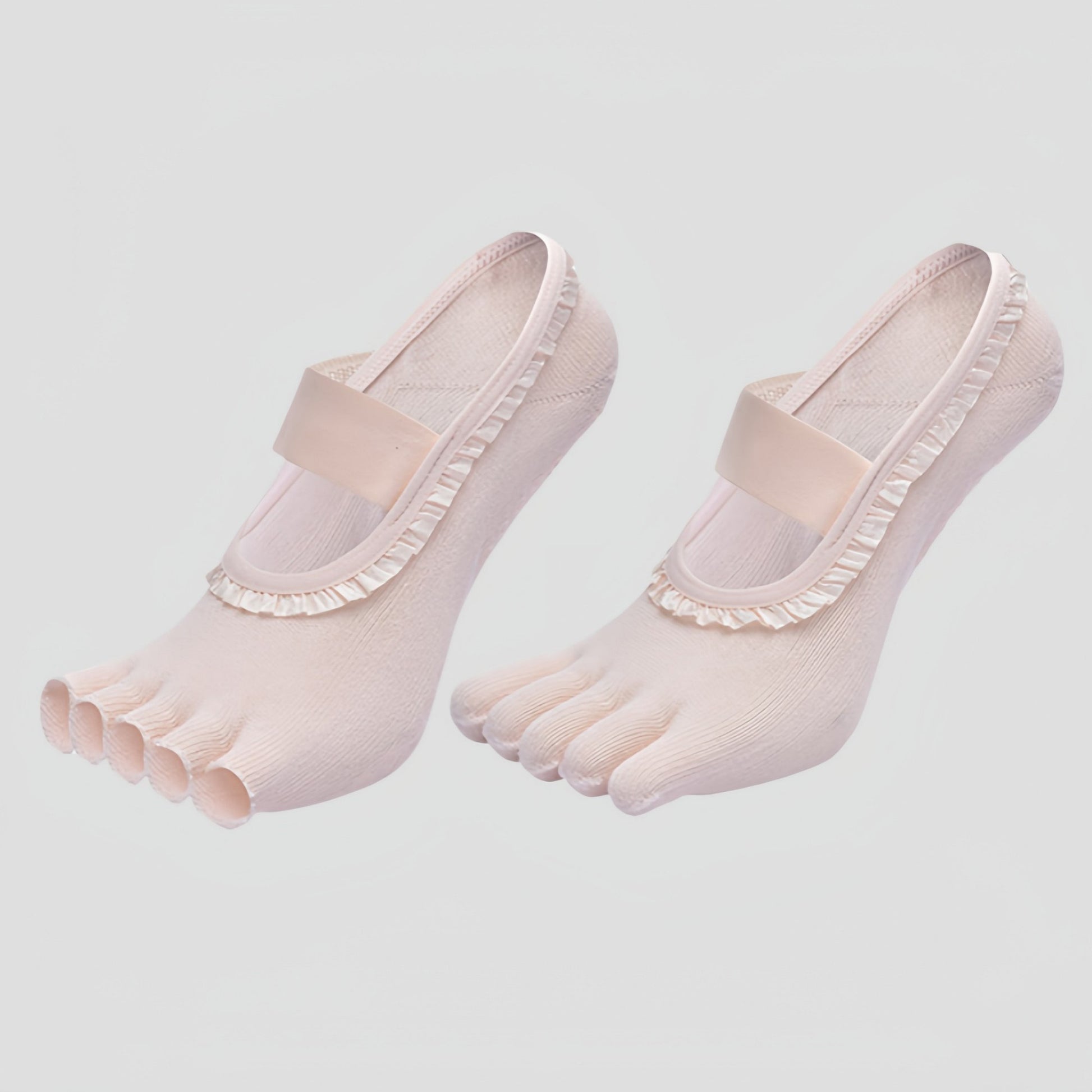 Anna-Kaci Women's 2-Pack Five-Toe Socks with Ruffle Trim and Ballet-Inspired Strap in Two Unique Styles