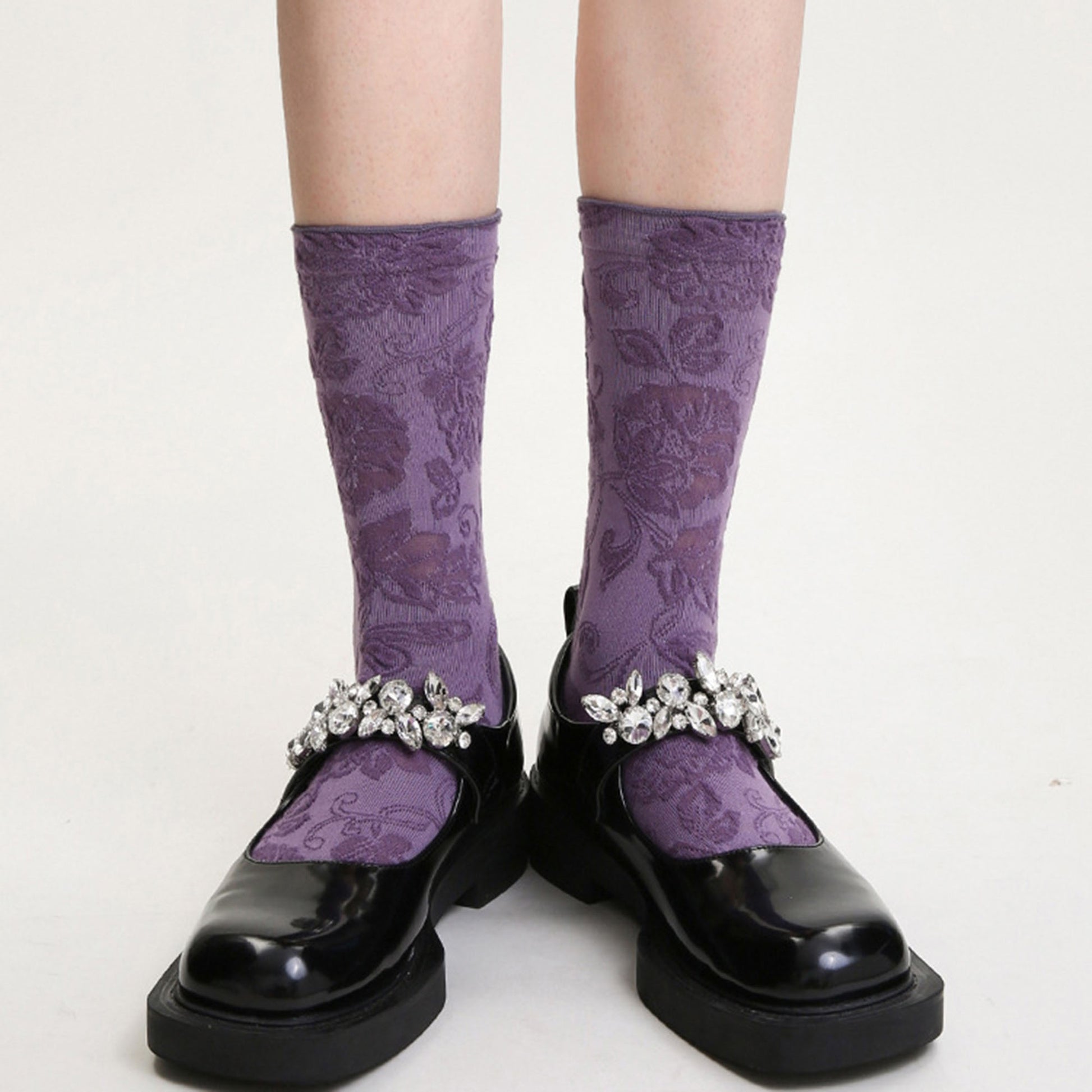 The Anna-Kaci Women's 3-Pair Floral Pattern Crew Socks bring softness and charm to your wardrobe with their detailed knit floral design. These mid-length socks feature scalloped cuffs and reinforced toes and heels for added comfort and durability. Made from soft, breathable knit fabric, they offer gentle stretch and all-day wearability. A beautiful choice for adding subtle pattern and texture to your daily look.