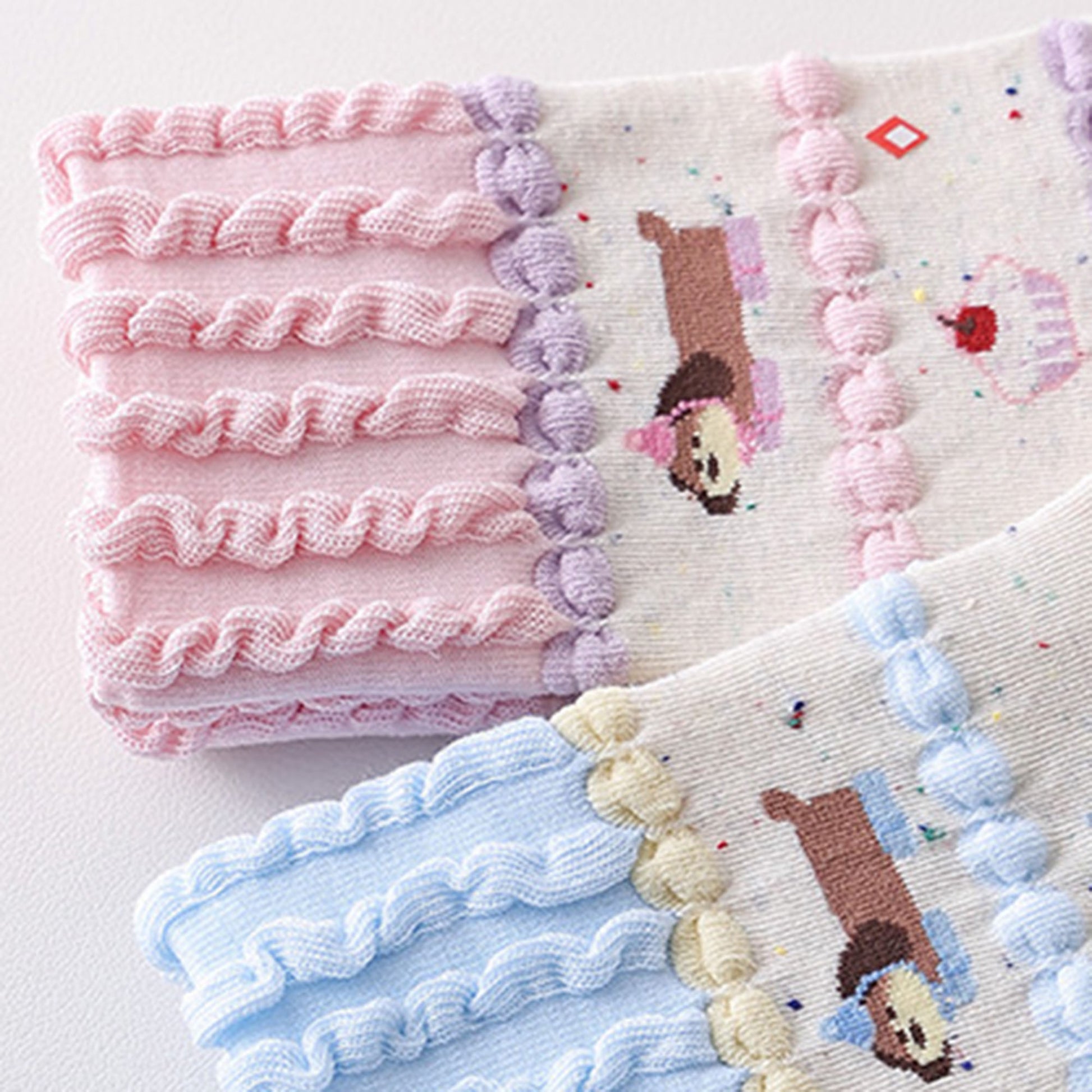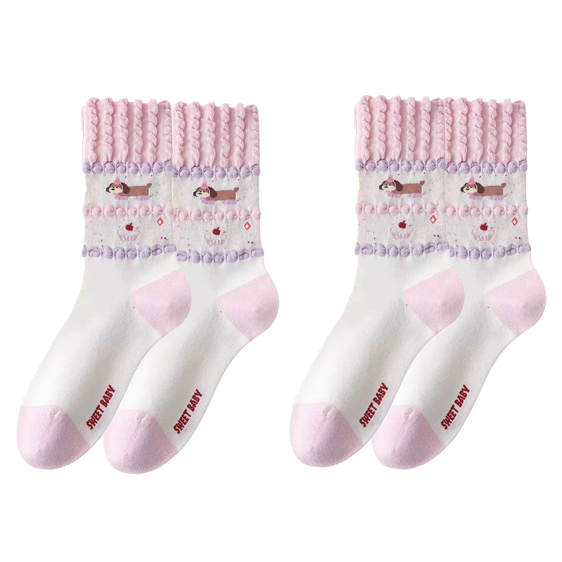 Anna-Kaci Women's 2-Pair Ruffle Cuff Crew Socks with Soft Knit Fabric Playful Character Pattern and Stretch Fit