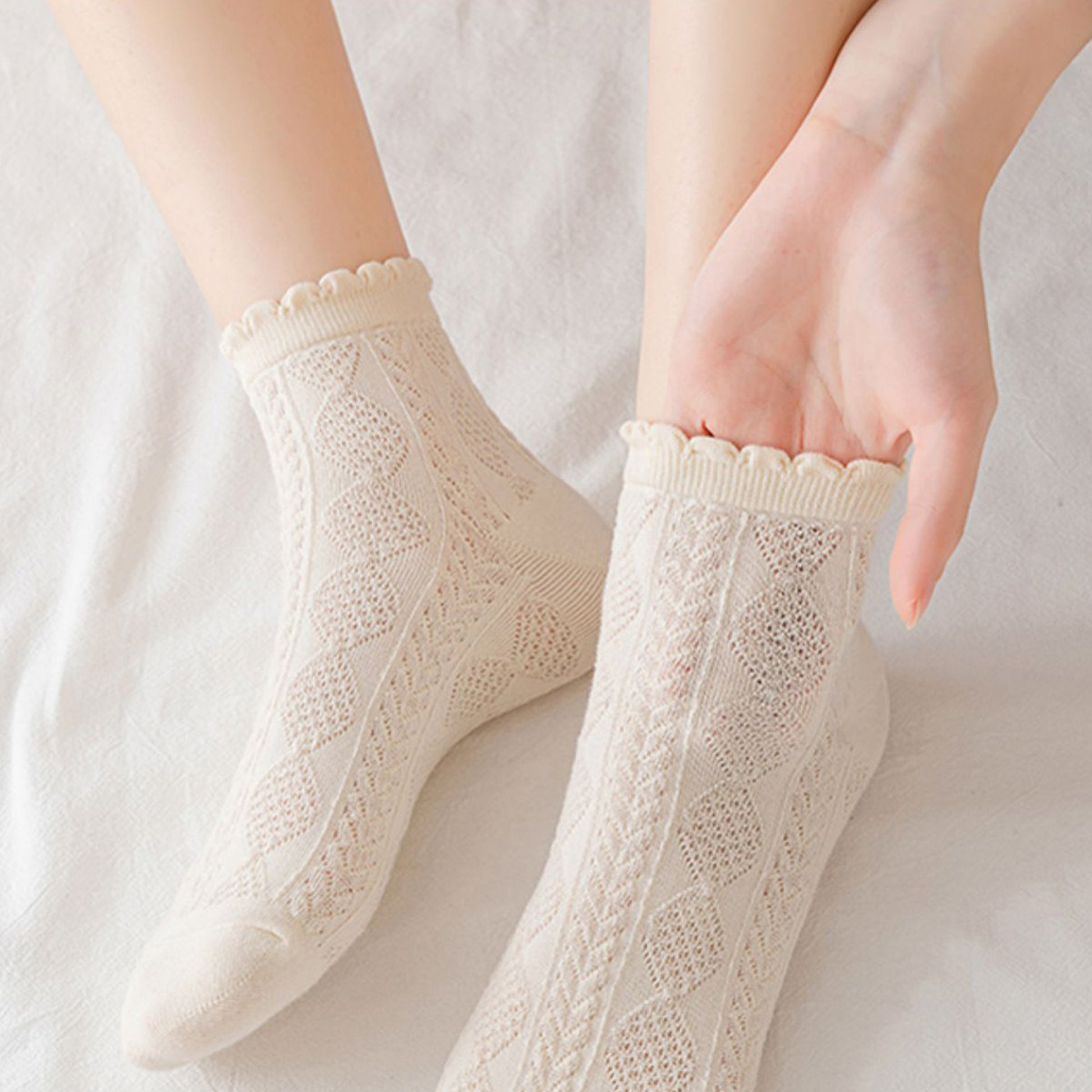 The Anna-Kaci Women's 3 Pairs Textured Ankle Socks offer a chic blend of style and comfort for everyday wear. Featuring a delicate knitted diamond pattern and feminine scalloped trim, these socks add a touch of elegance to any outfit. Designed with lightweight, breathable fabric and a flexible fit, they provide all-day comfort while staying securely in place. This versatile 3-pack pairs effortlessly with sneakers, loafers, or flats for both casual and refined looks.