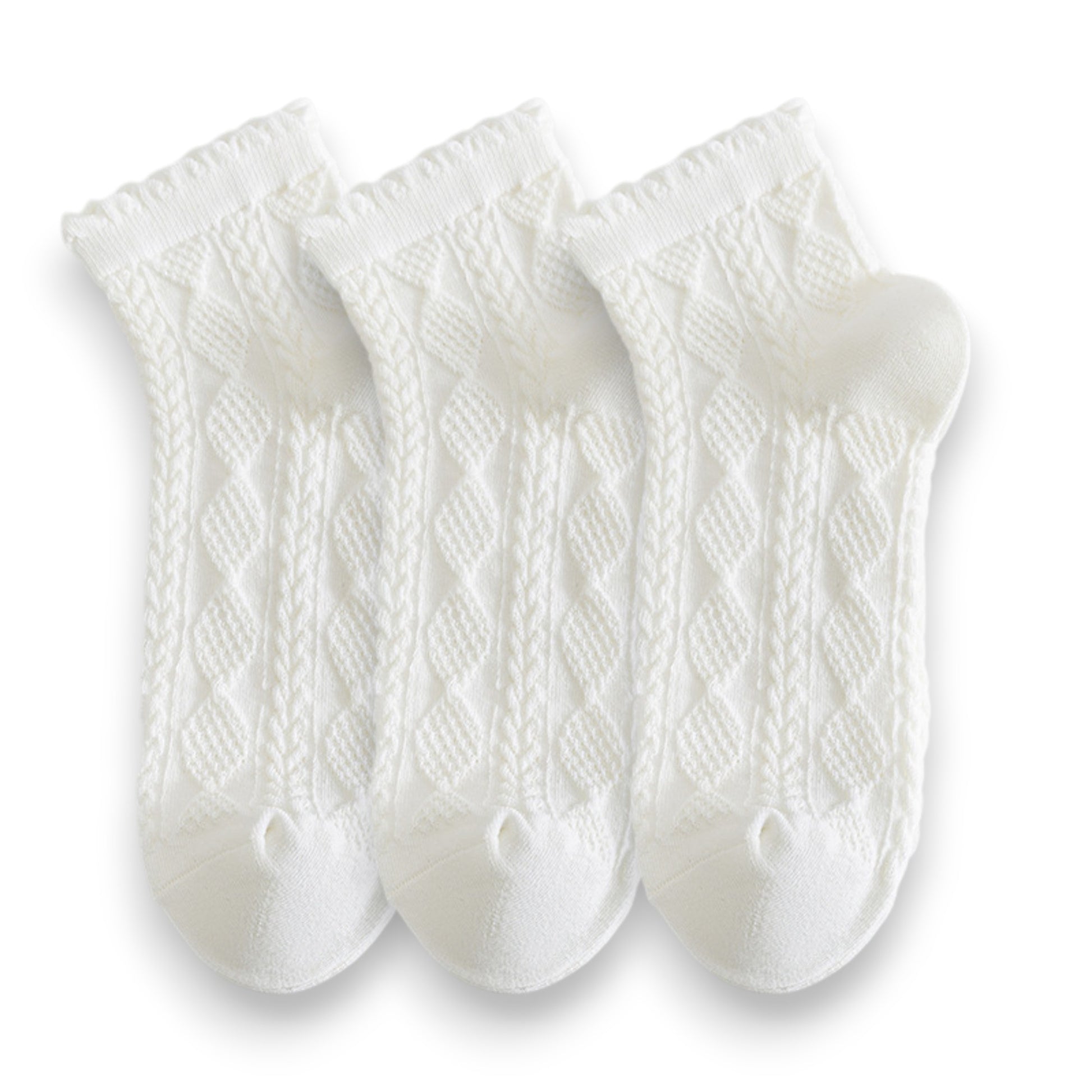 Anna-Kaci Women's 3 Pairs Textured Diamond Socks with Knitted Pattern and Scalloped Trim