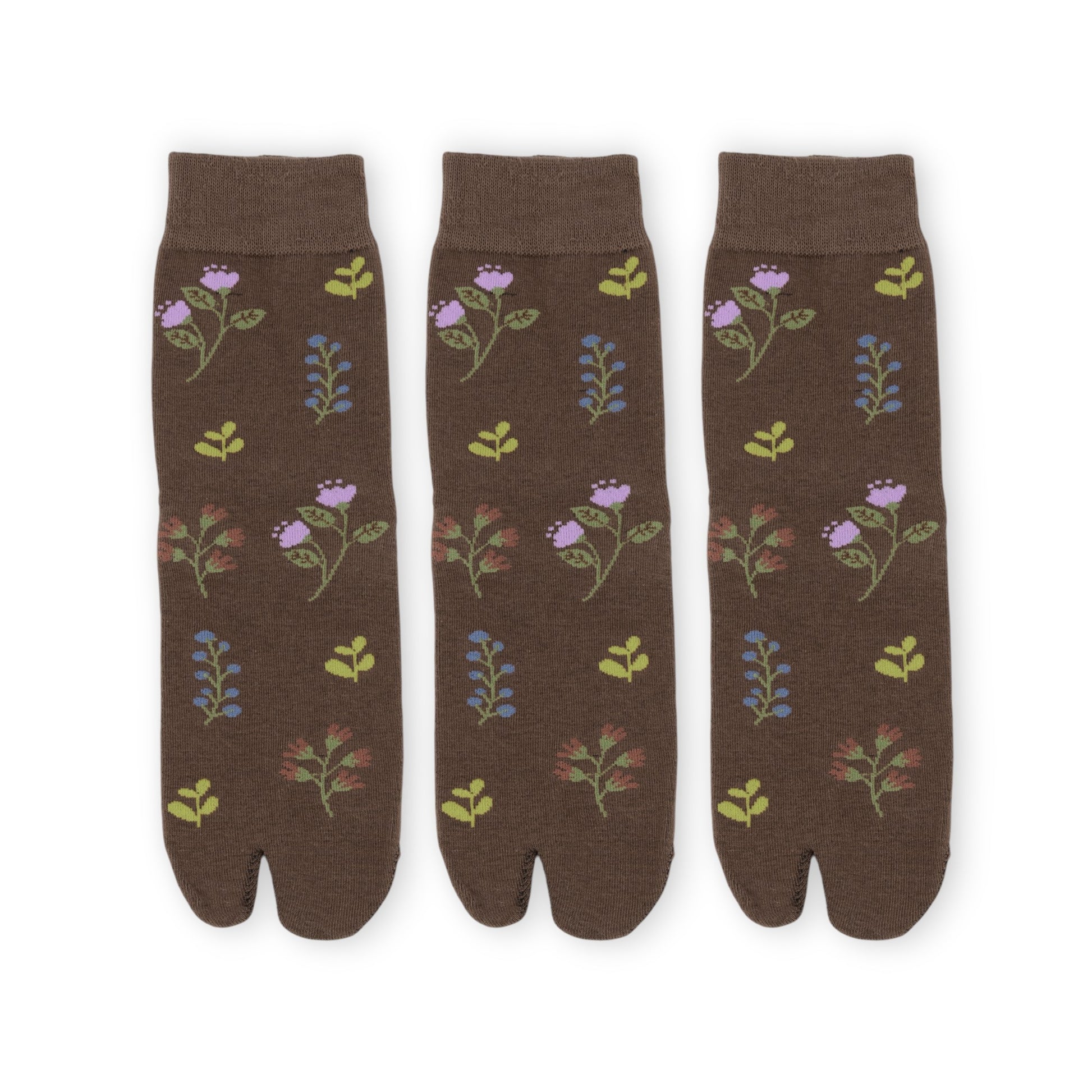 Anna-Kaci Women's 3 Pairs Floral Patterned Split-Toe Socks Soft Cotton Stretch Knit Crew Style