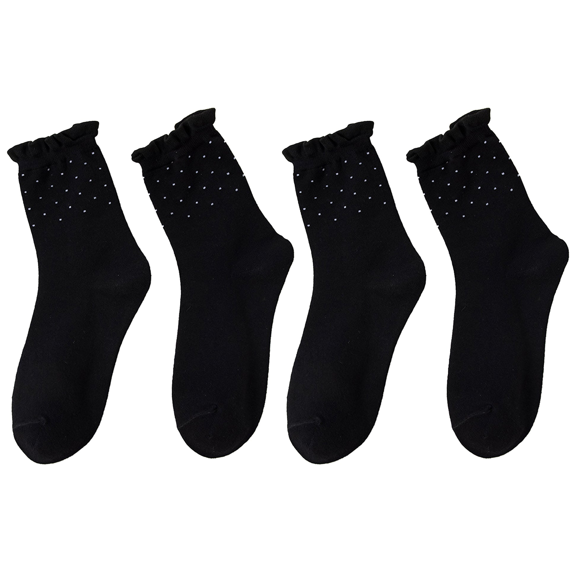 Anna-Kaci Women's 4 Pairs Knit Socks with Polka Dot Design Ruffle Edge Ribbed Cuffs Soft Stretch Fabric