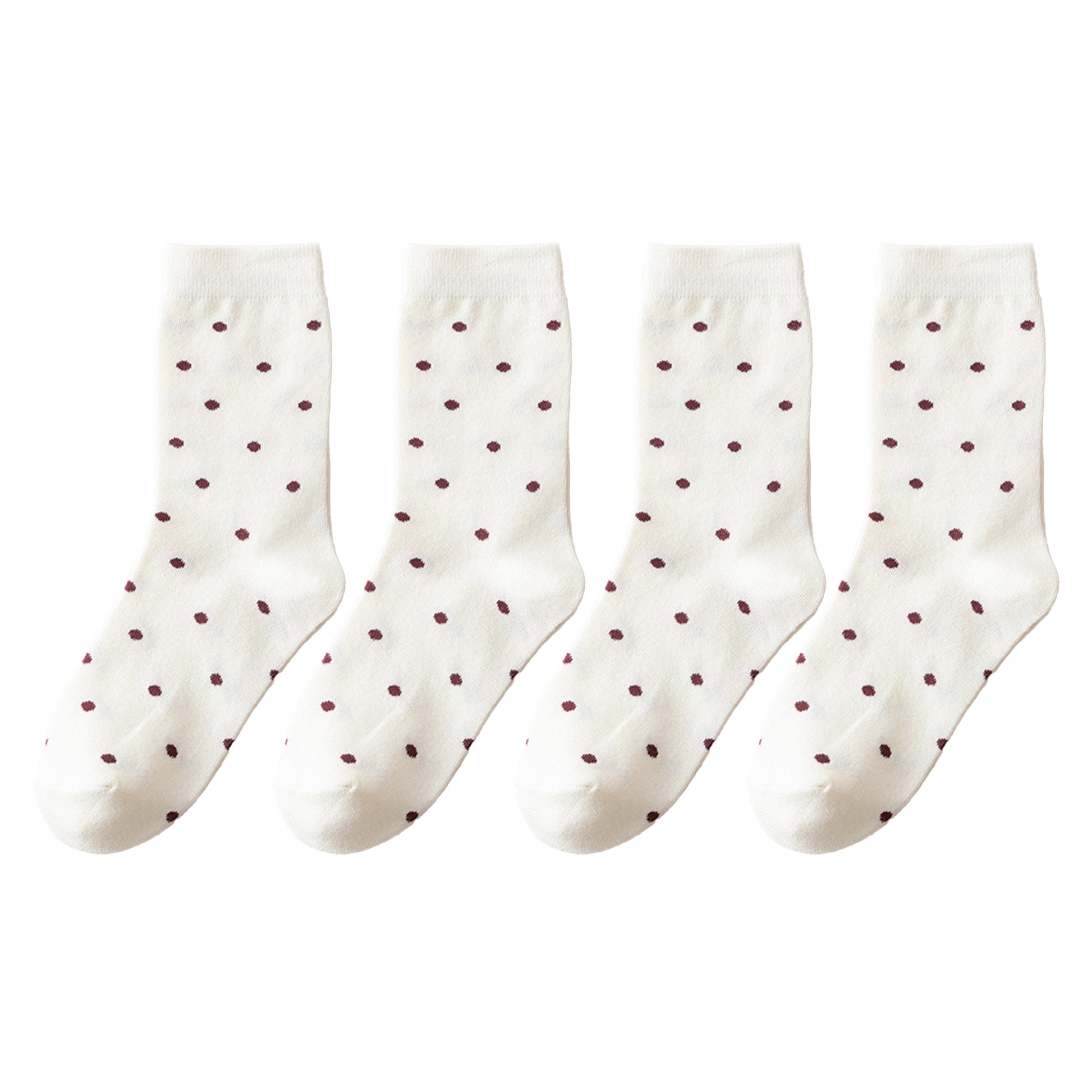 Women's 4 Pairs Knit Socks add a playful touch to everyday essentials with a classic polka dot design. Each pack includes 4 pairs in the same color, crafted from soft knit fabric that offers breathable comfort and flexibility. Featuring ribbed cuffs for a secure fit, these socks pair effortlessly with heels, sneakers, or casual shoes for versatile styling. Perfect for layering and daily wear, this multi-pair set combines fun design with practical comfort.
