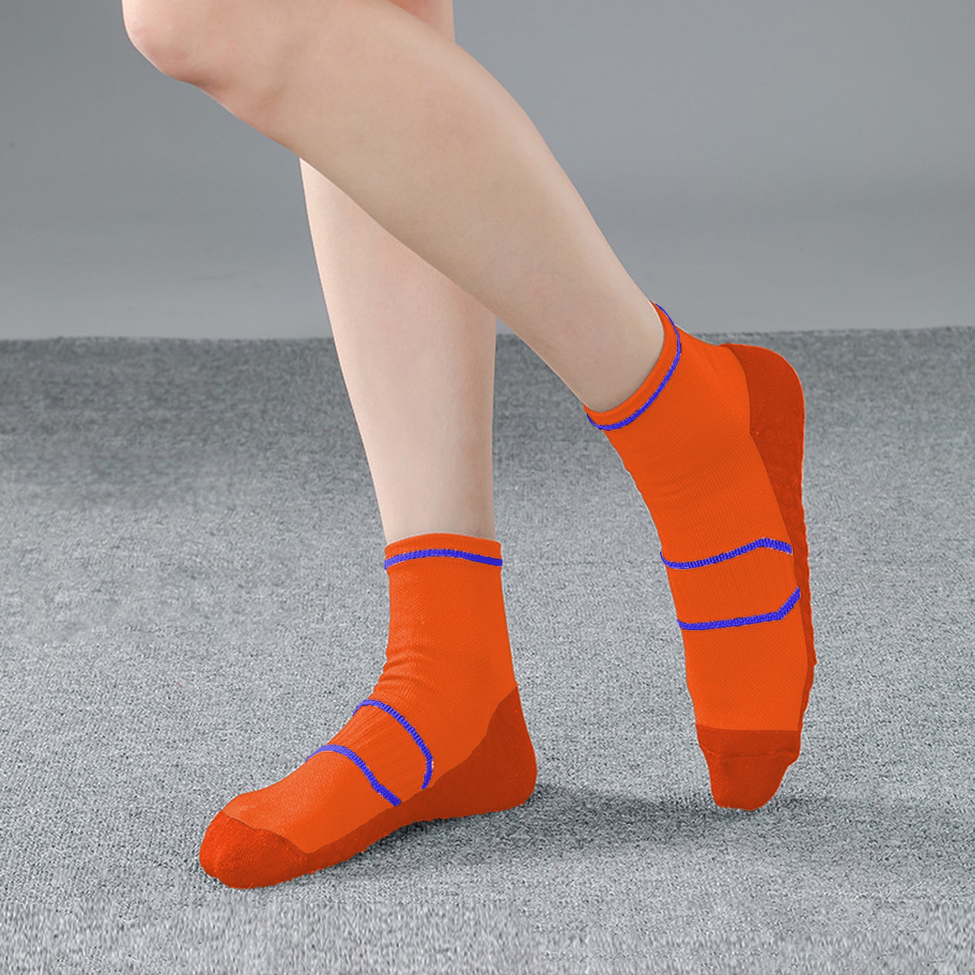 Stand out with our Men's Bright Orange Athletic Ankle Socks featuring striking blue accents. These socks are designed to bring energy to your footwear while delivering top - notch comfort and performance. Crafted from breathable, moisture - wicking fabric, they keep your feet dry by drawing sweat away, making them perfect for intense workouts, sports matches, or even just everyday wear when you want to add a pop of color.