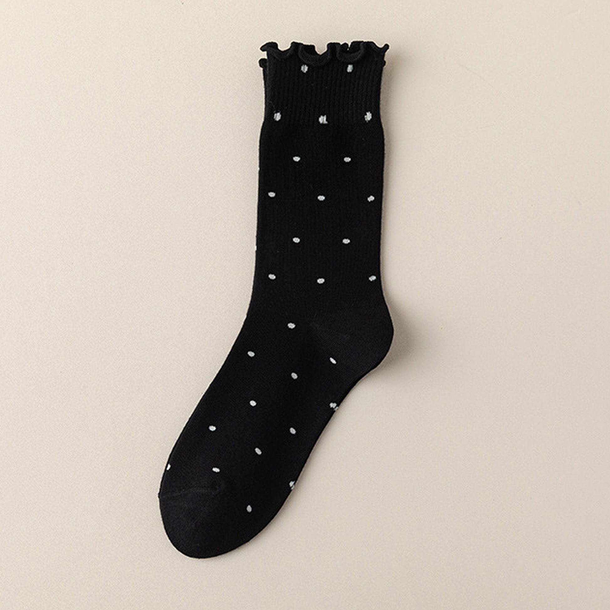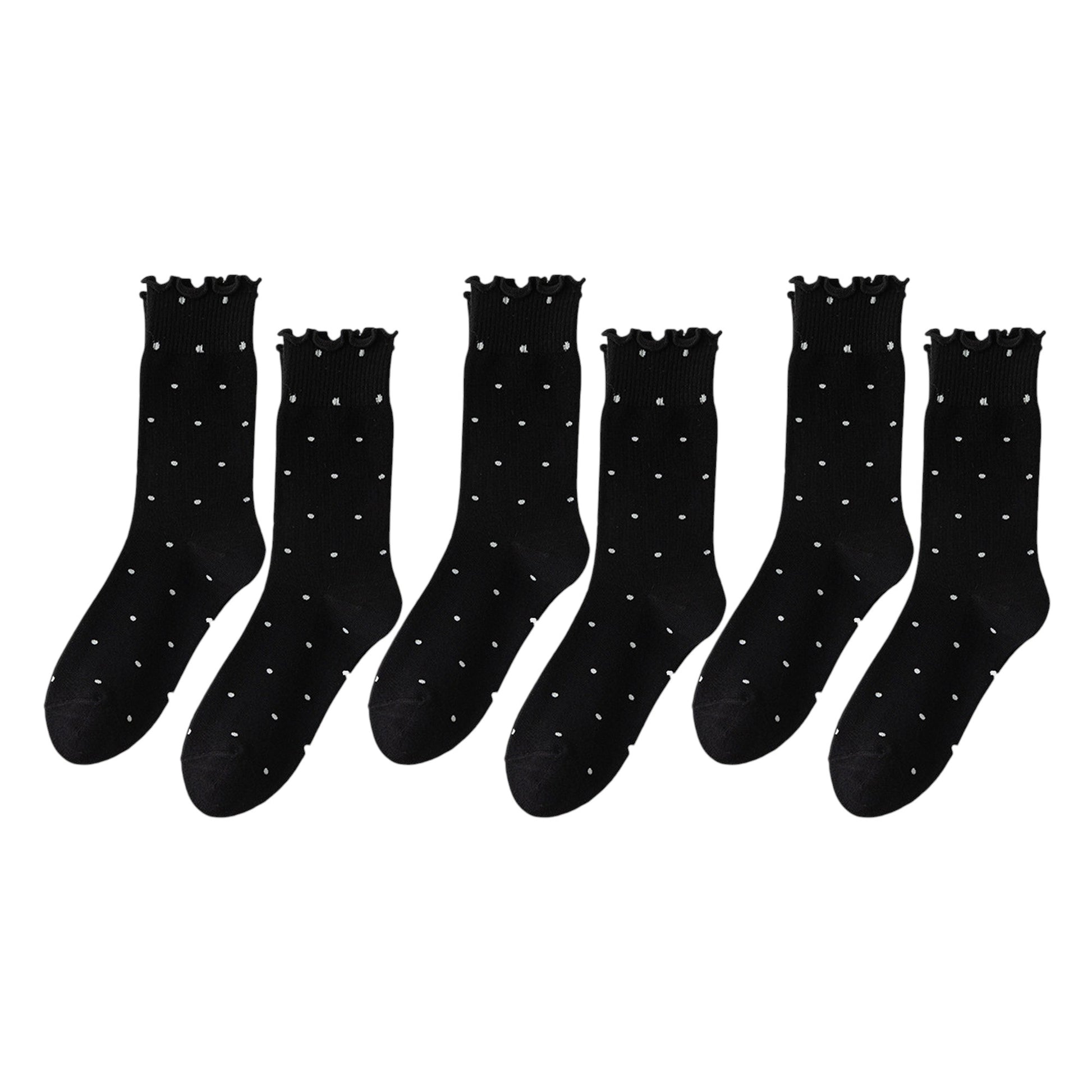 Anna-Kaci 6pk Women's Polka Dot Ankle Socks with Ruffled Cuffs