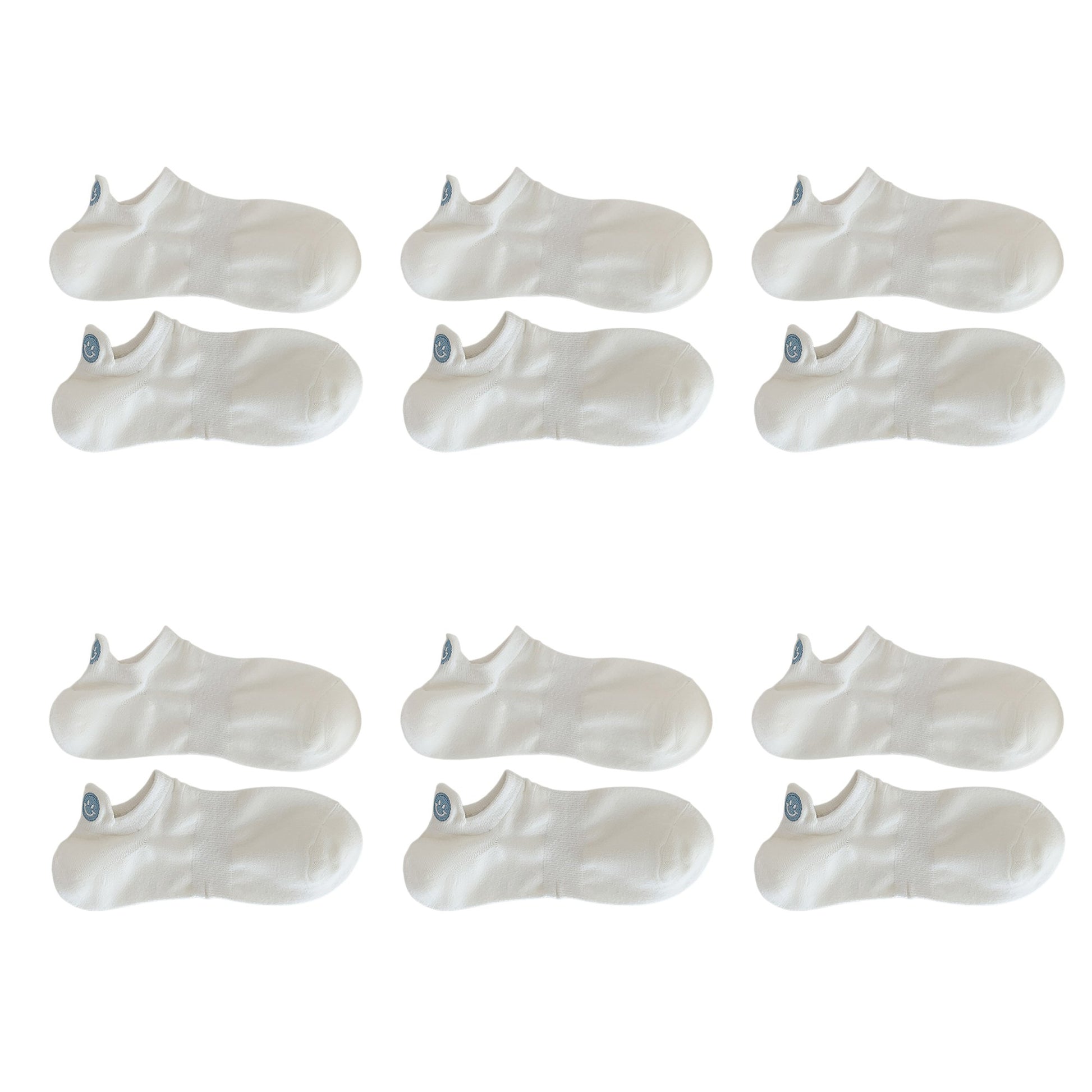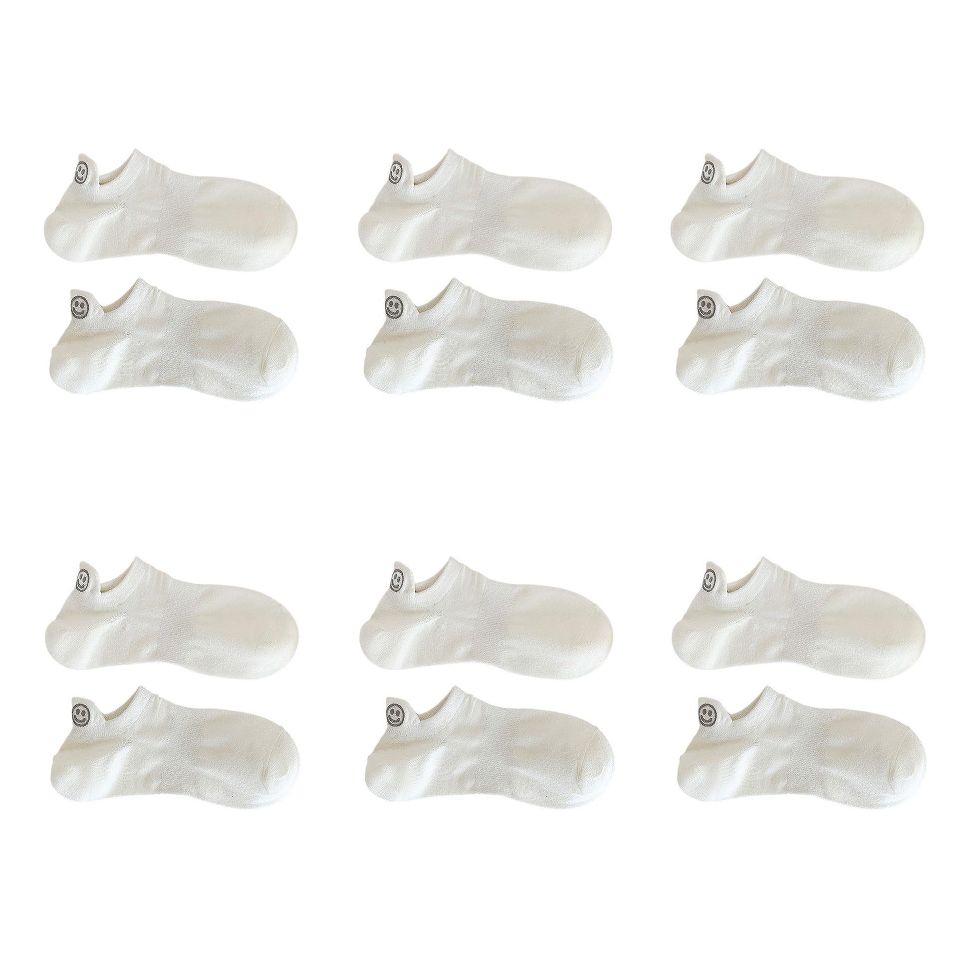 Anna-Kaci Women's 6pk Cotton White No - Show Socks with Smiley Face Embroidery