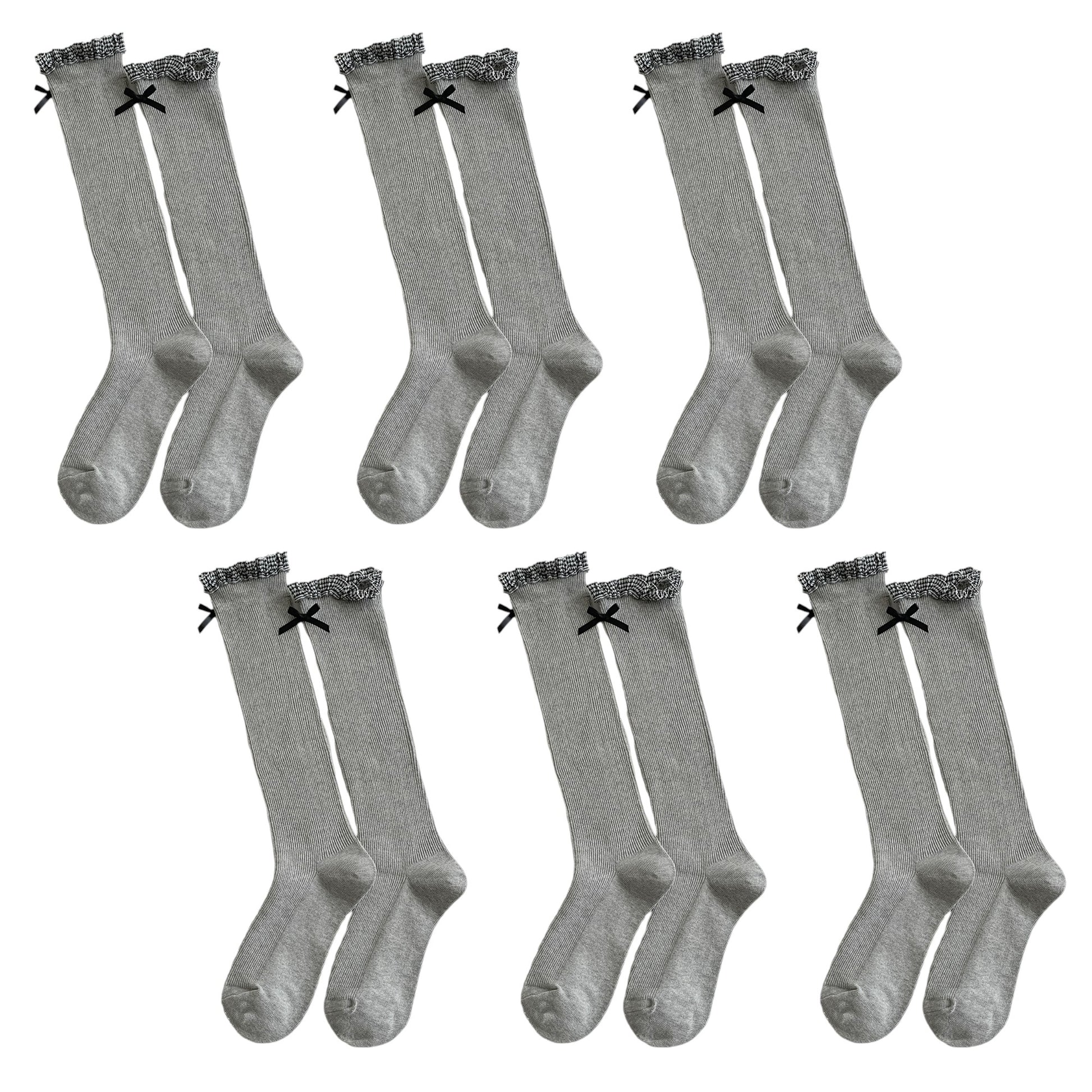Anna-Kaci Women's 6pk Knee - High Socks with Bow and Patterned Cuff