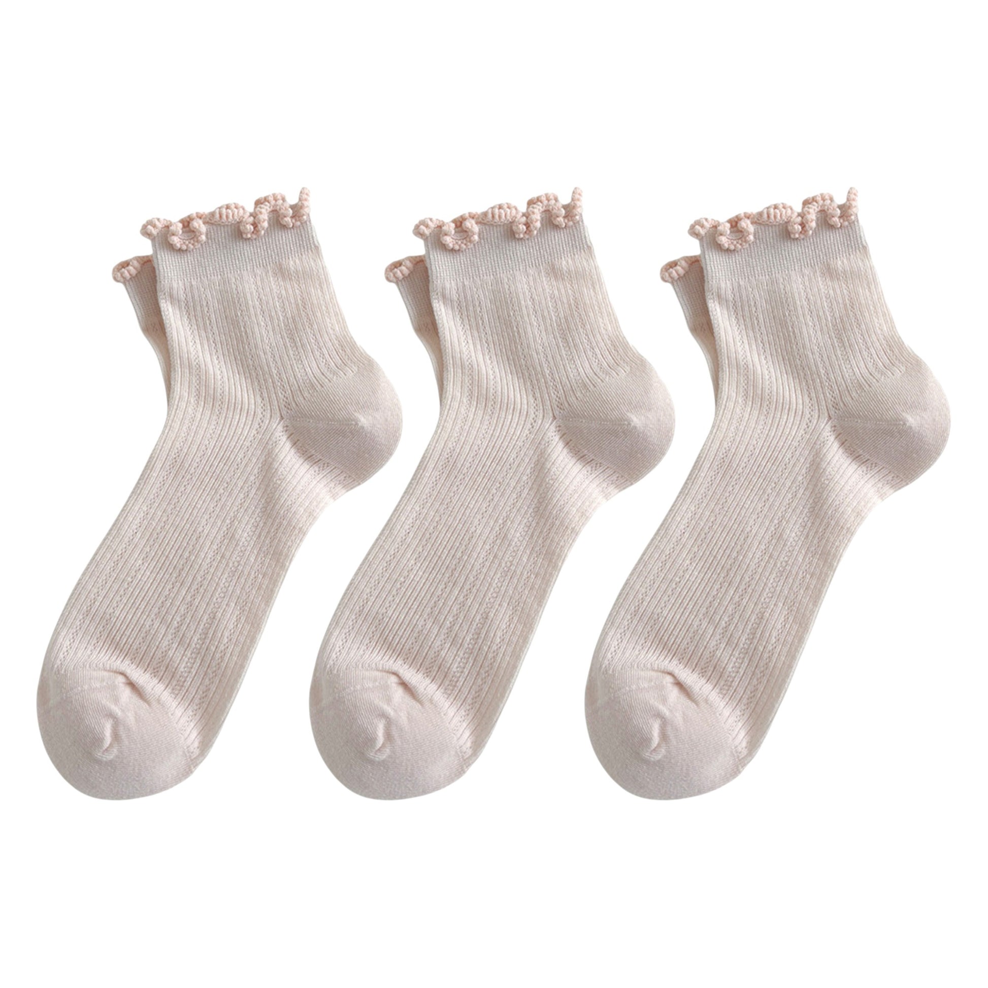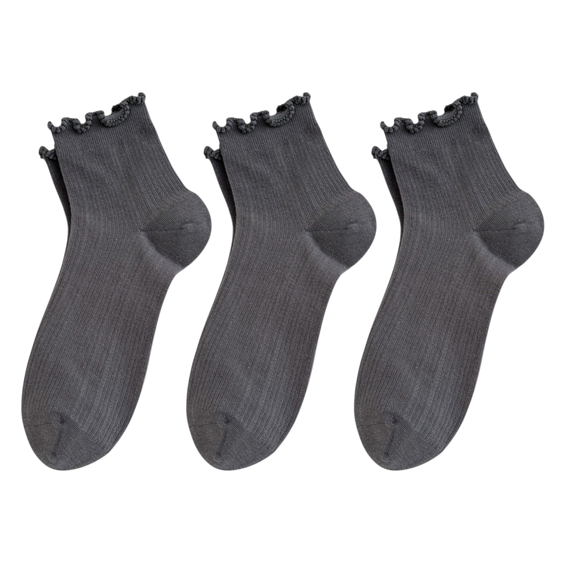 Anna-Kaci Women's 3-Pair Pack Cotton Mesh Ankle Socks with Delicate Ruffle Trim
