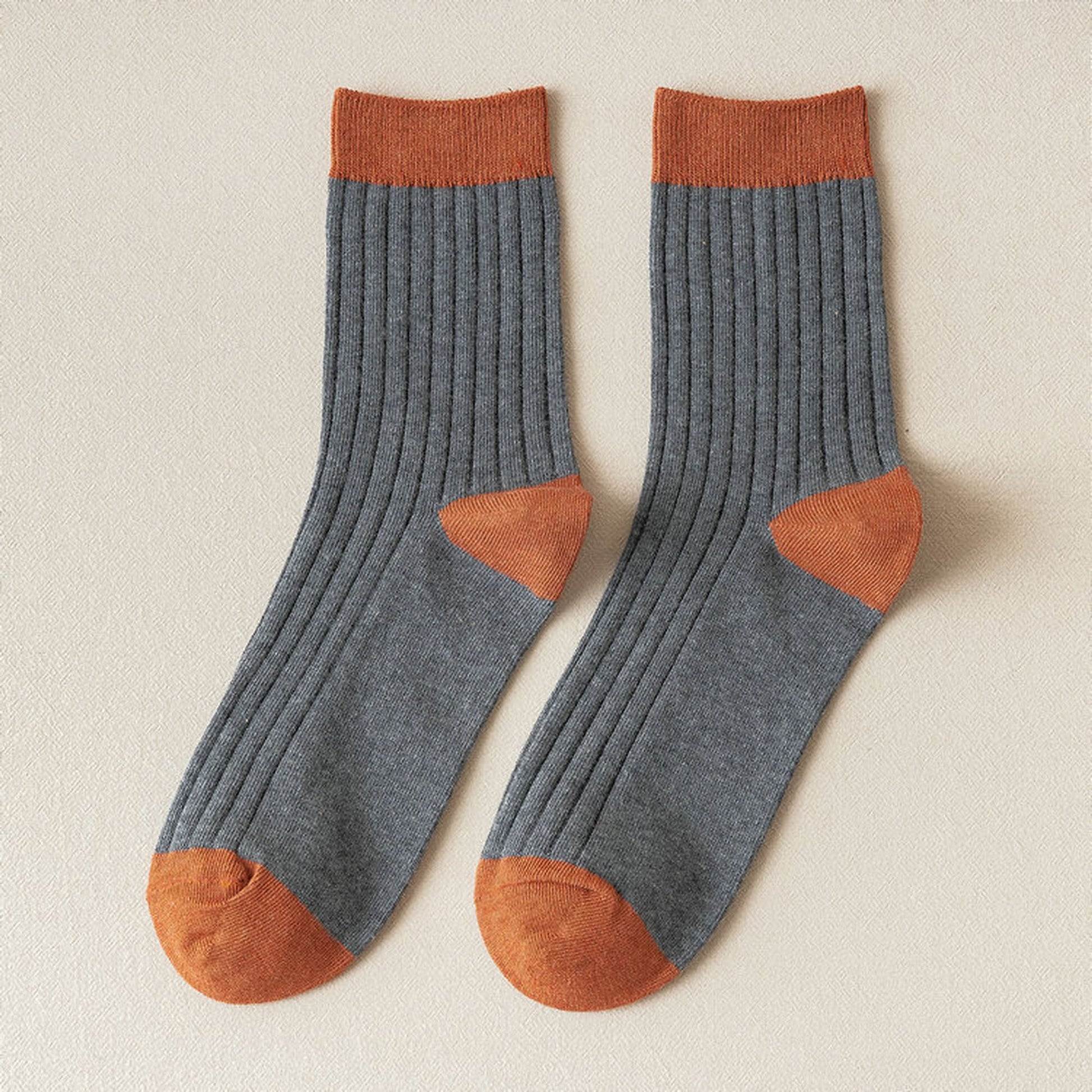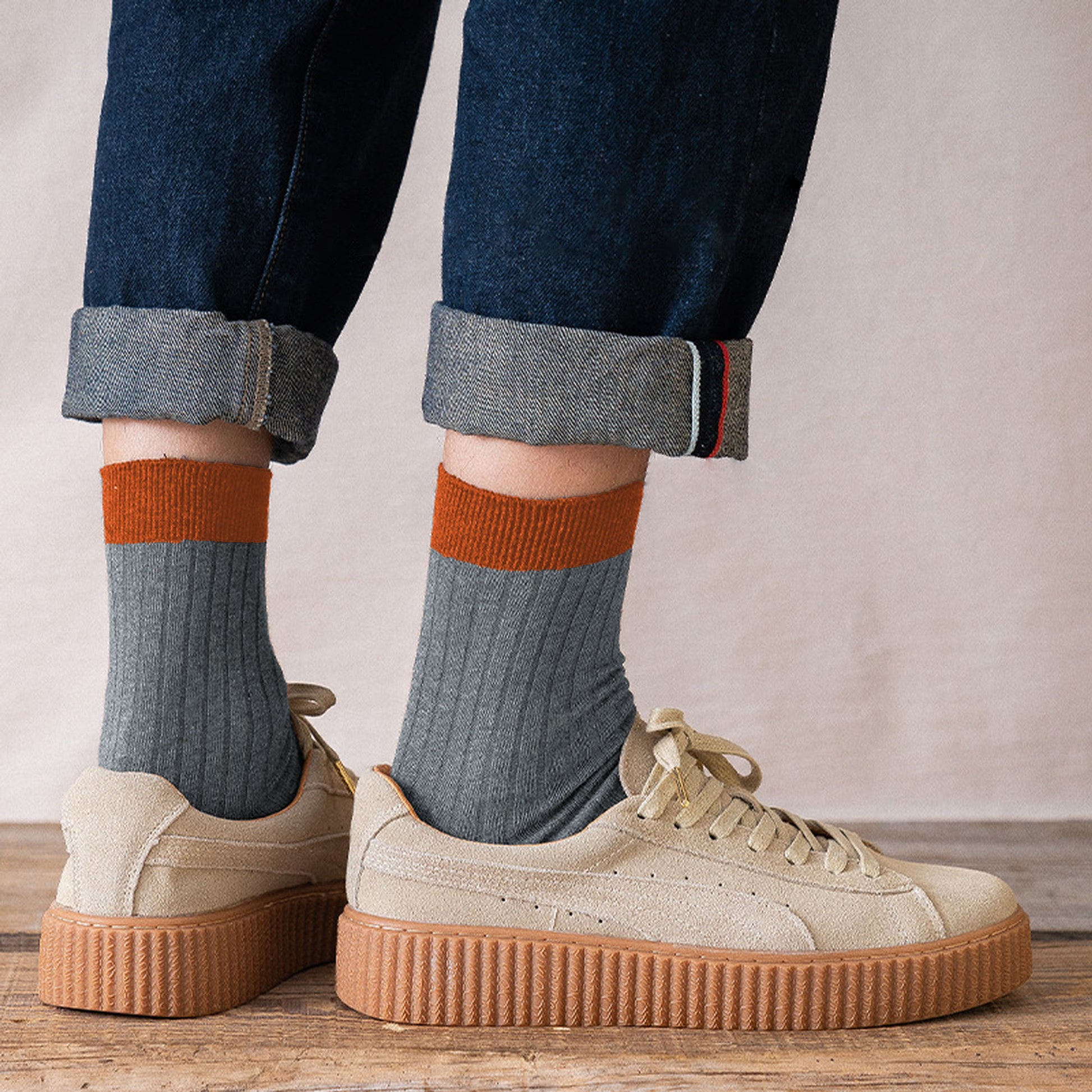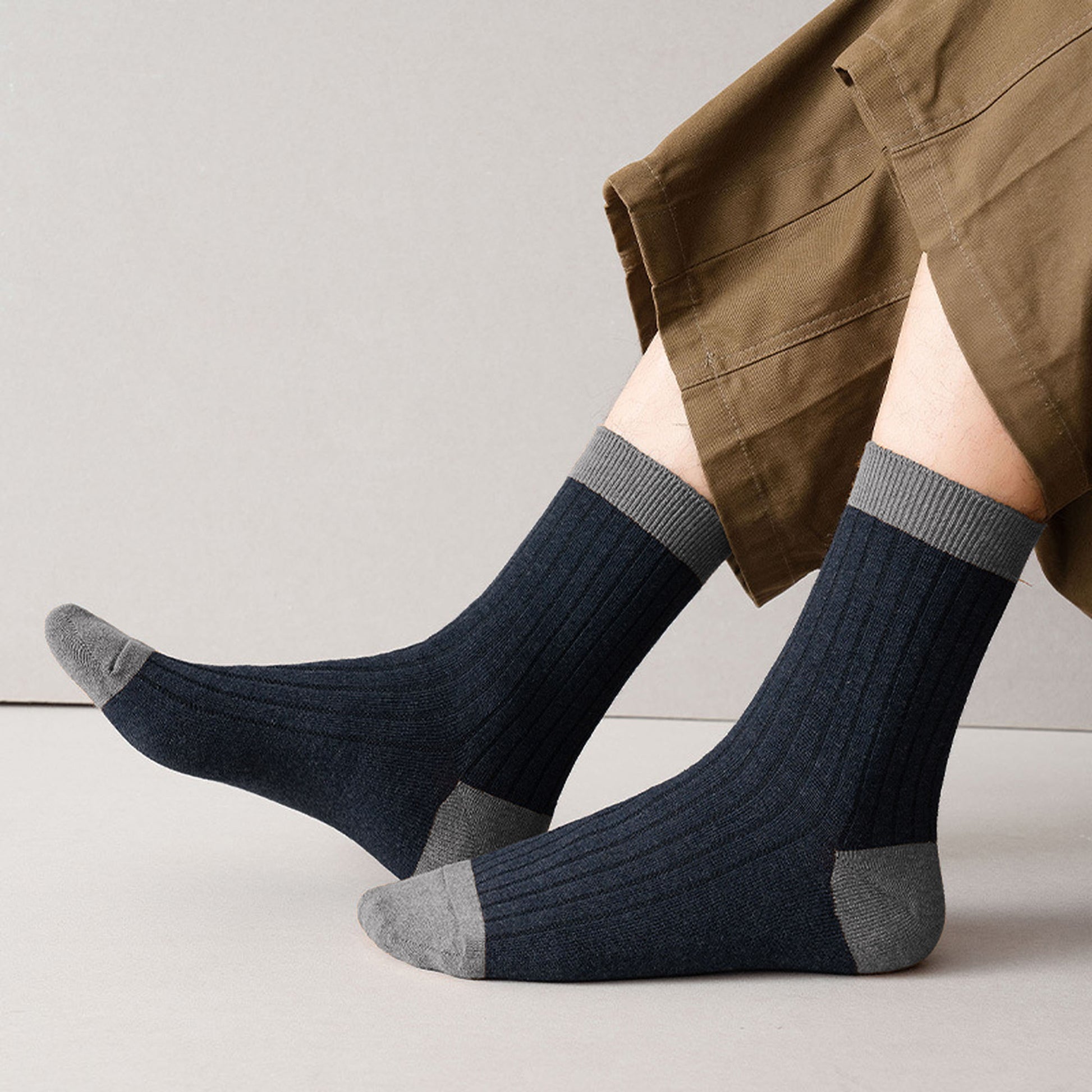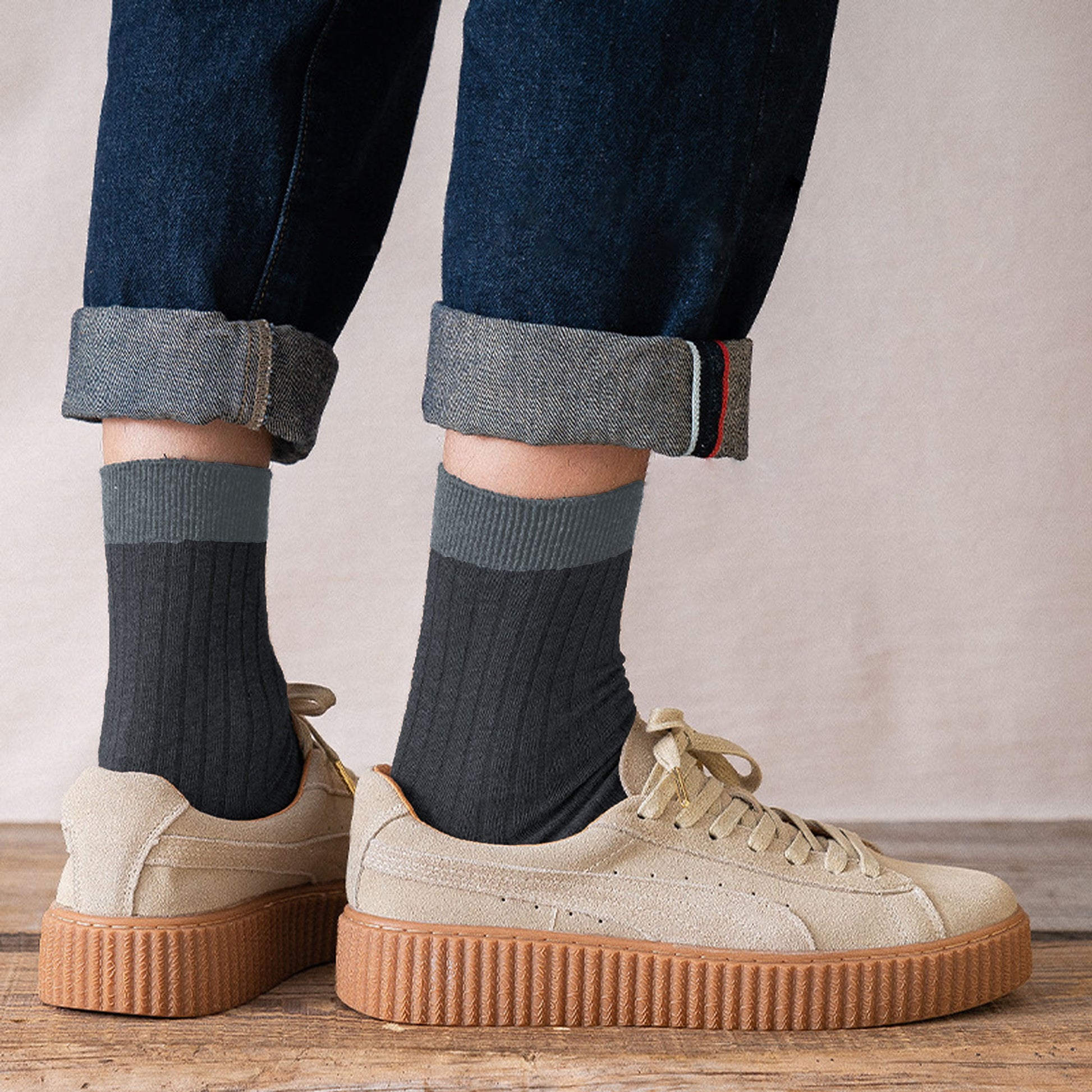 Upgrade your sock drawer with our Men's Contrast - Color Ribbed Crew Socks, designed for ultimate comfort and style. The 6x stretch ribbed cuff is a game - changer¡ªit hugs your ankle securely without feeling tight or restrictive, bidding farewell to uncomfortable, binding socks. You¡¯ll love how these socks stay put all day, eliminating the hassle of constant readjustment.