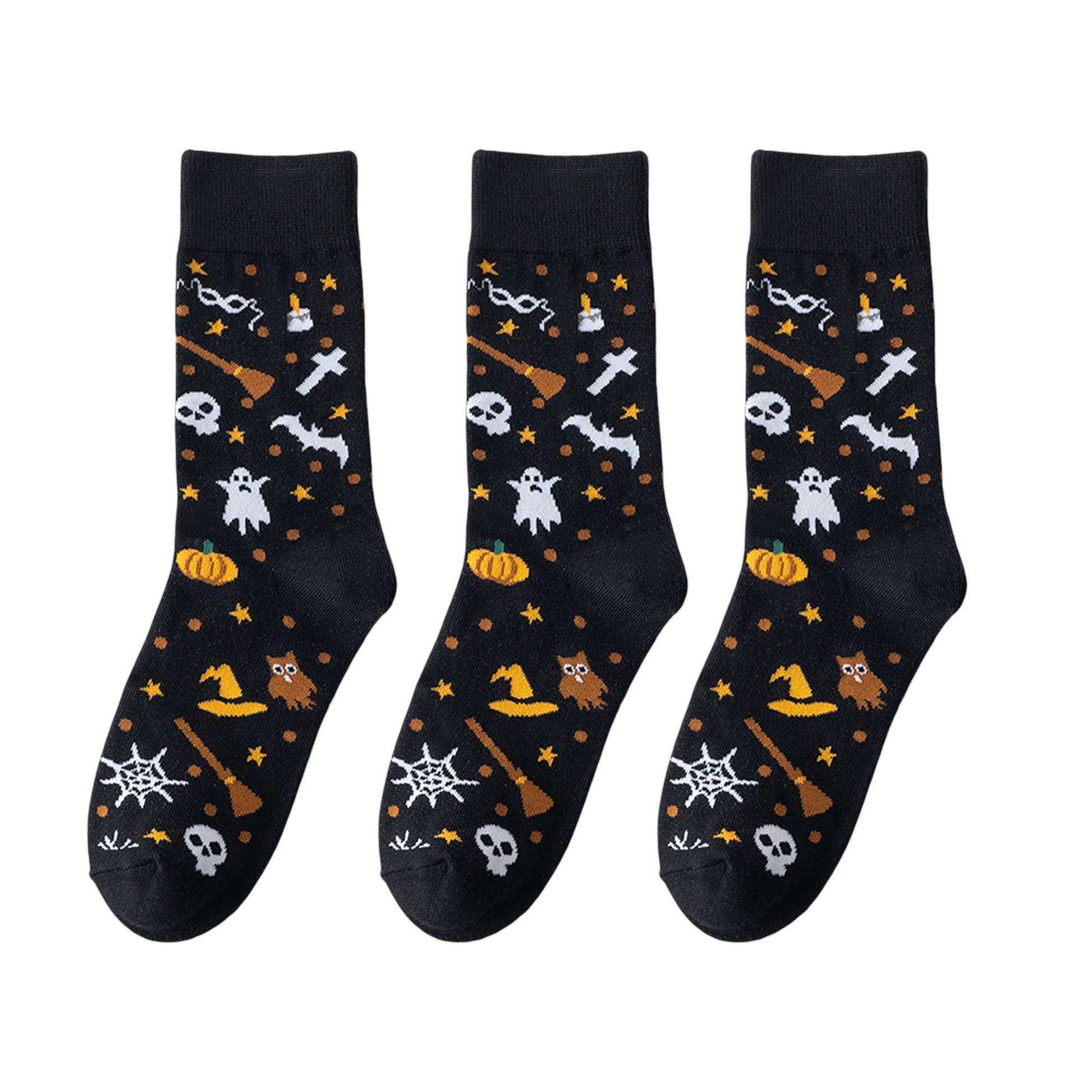 Anna-Kaci Women's 3-Pack Halloween Cotton Crew Socks with Festive Patterns