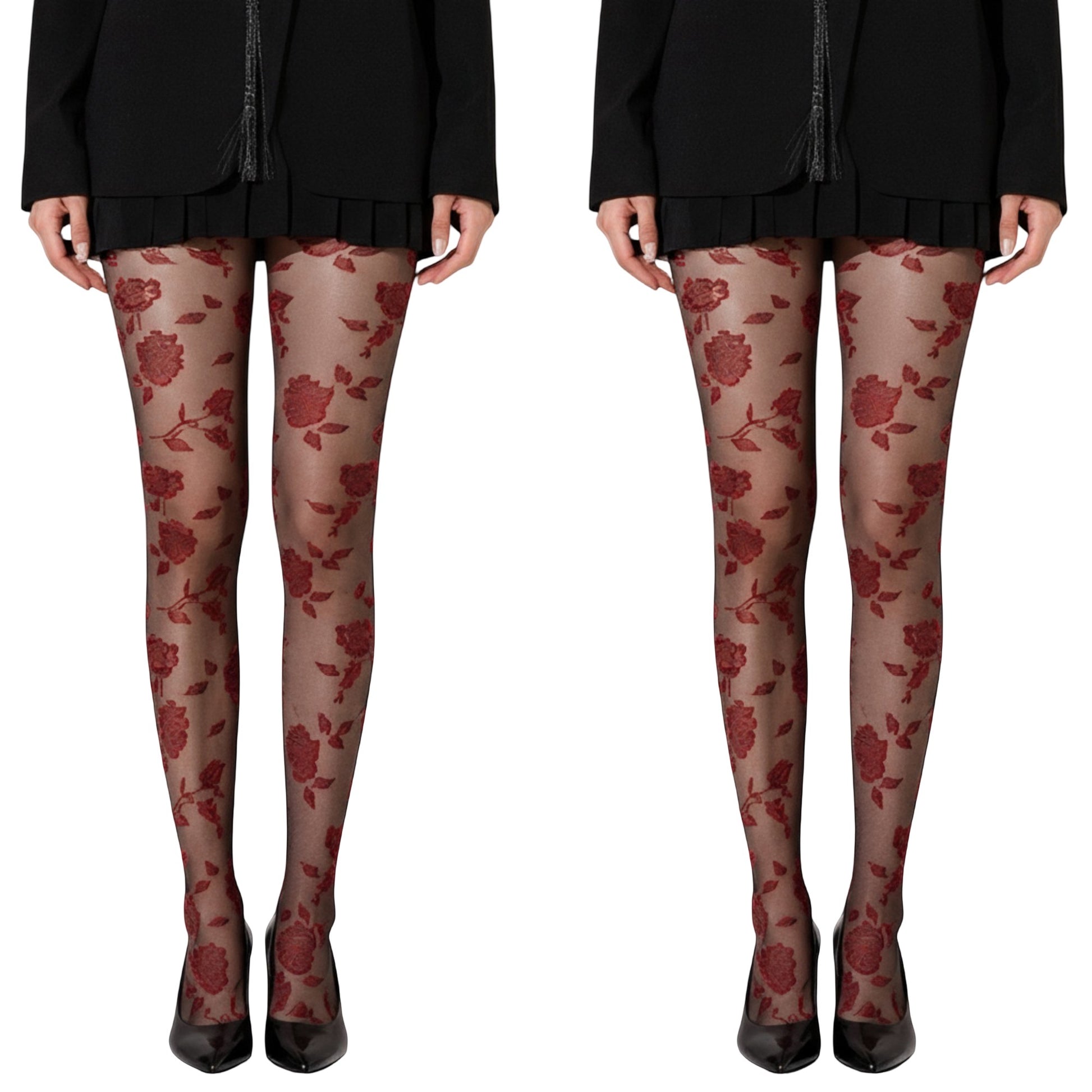 Anna-Kaci 2pcs Women's Sheer Floral Pattern Tights with Bold Rose Motif and Stretch Mesh Design