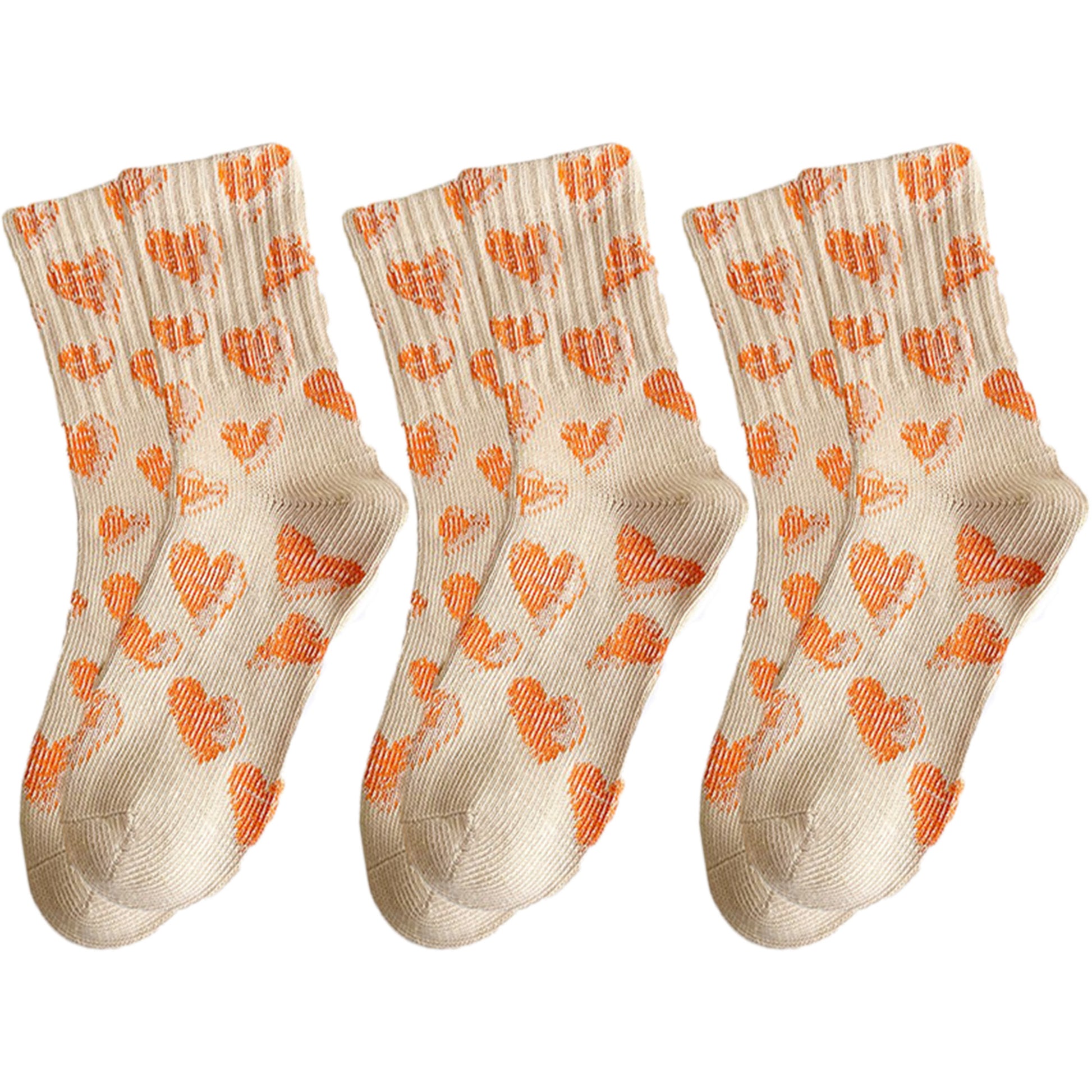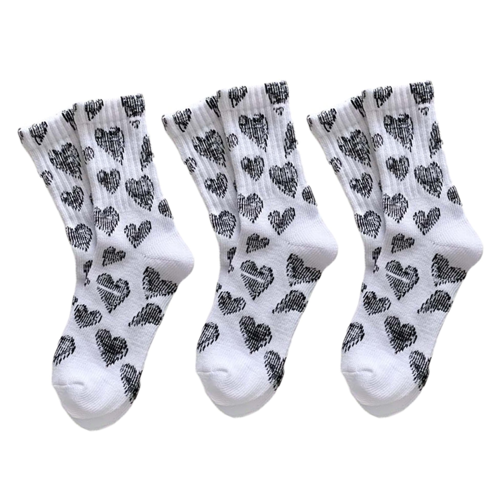 Anna-Kaci 3-Pair Soft Knit Crew Socks Set with Sweet Heart Pattern, Stretch Comfort Ribbed Cuffs, Breathable Fabric and Everyday Essential Design