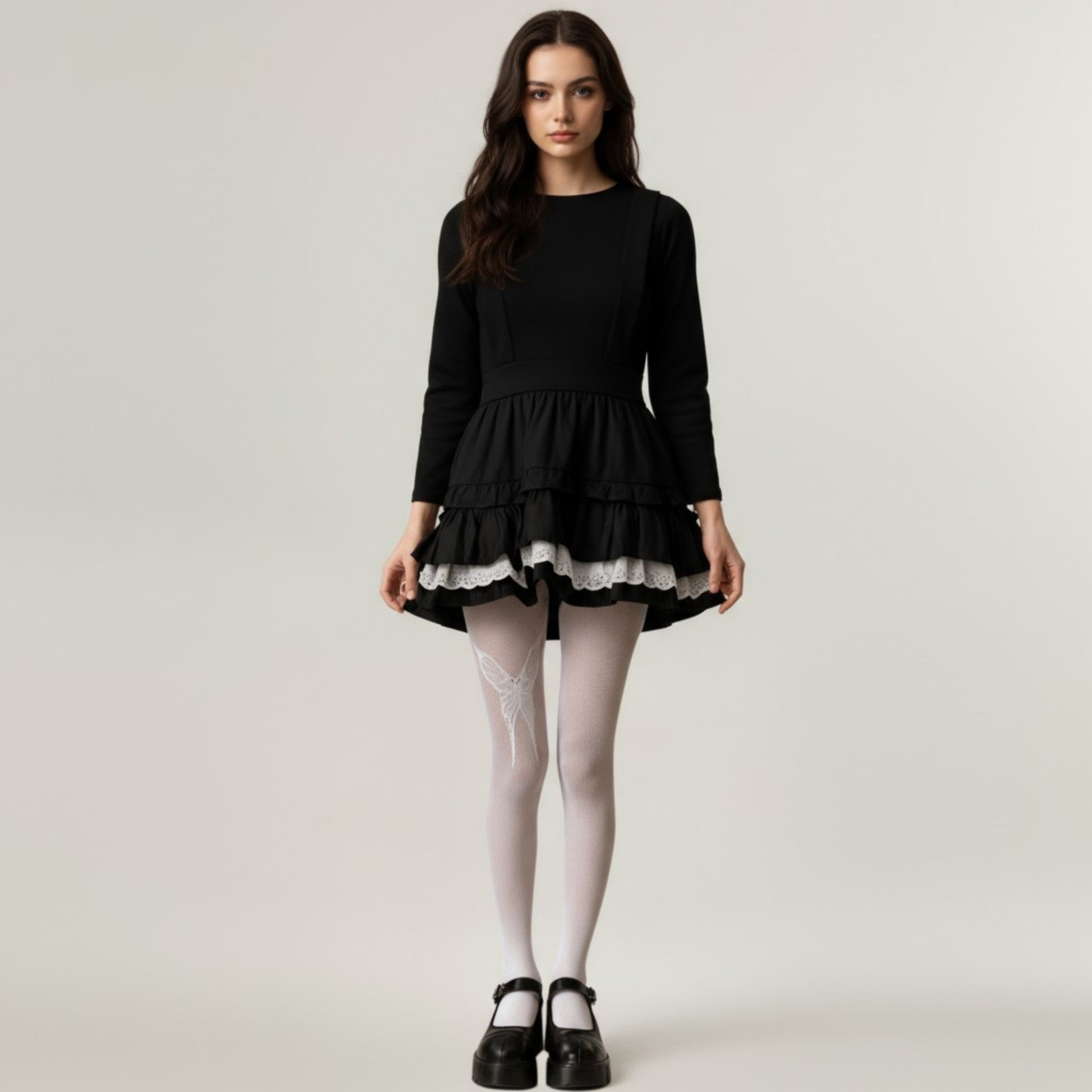 The Anna-Kaci Women's Fishnet Tights combine delicate detailing with modern elegance, featuring a beautifully woven butterfly lace accent. Made from soft, stretchy mesh fabric, these tights offer a comfortable fit that enhances your legs with subtle texture and charm. The intricate butterfly motif adds a whimsical and feminine touch, perfect for pairing with skirts or dresses. Designed to blend sophistication with playful style, these tights make a graceful statement for any occasion.