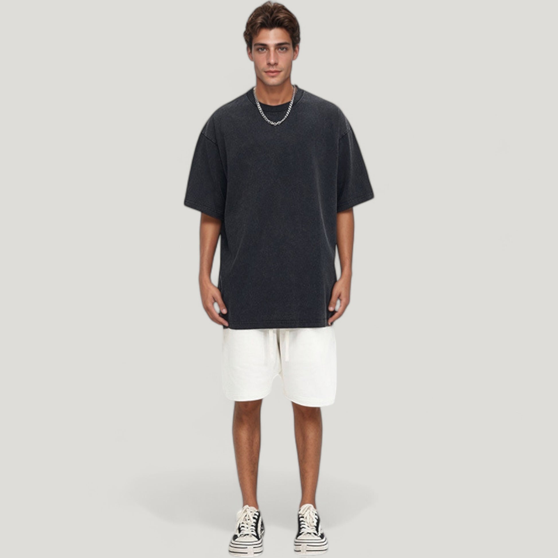 This Men's Oversized Short Sleeve Crew Neck T-Shirt combines modern streetwear style with everyday comfort. Featuring a relaxed silhouette and a washed vintage look, this tee pairs perfectly with jeans, joggers, or shorts for an effortlessly cool outfit.