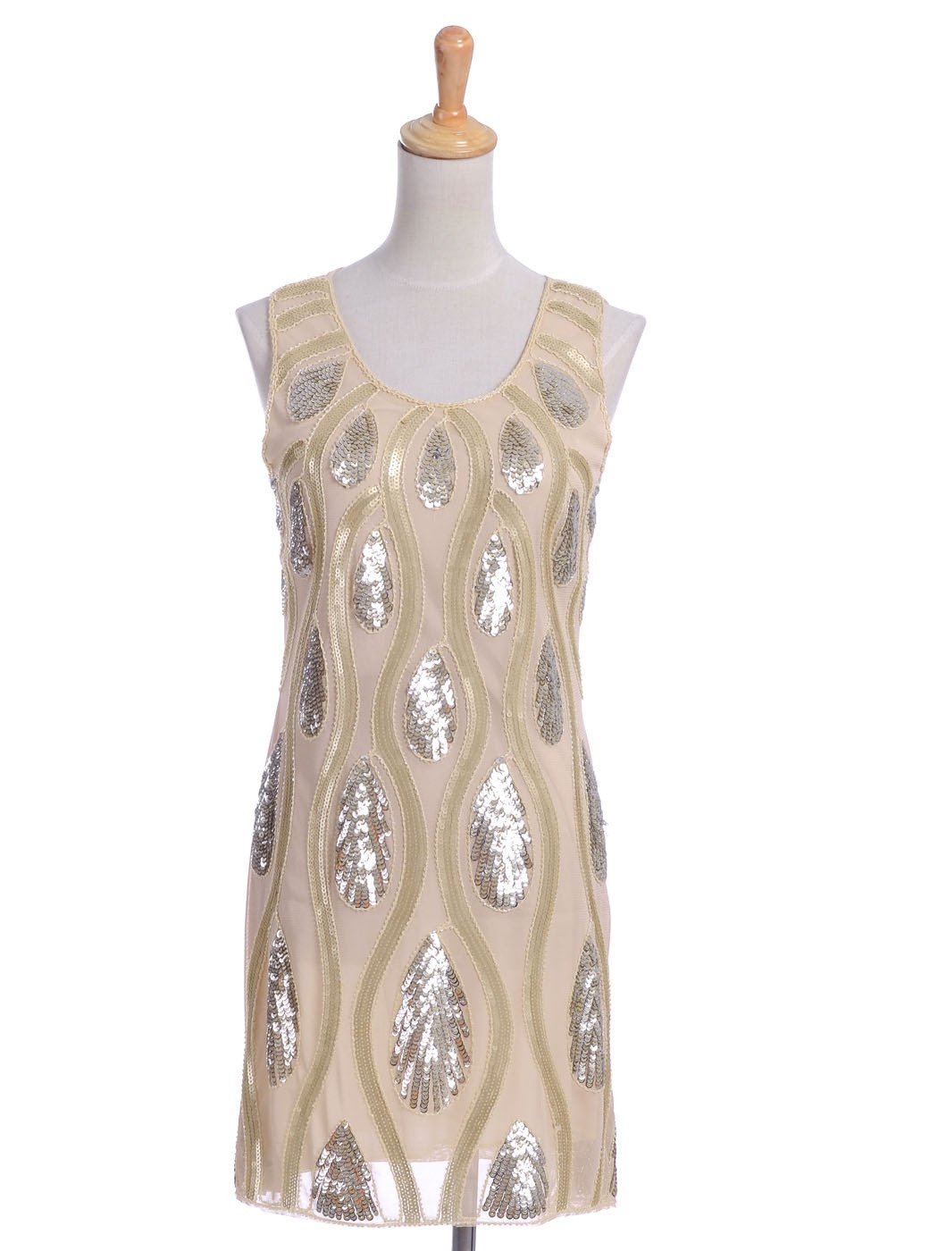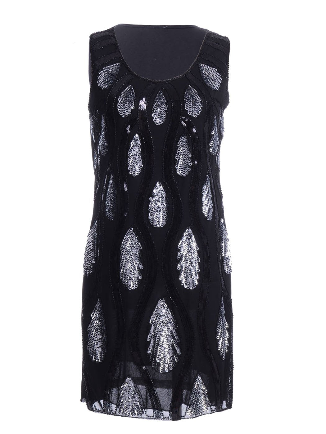 Anna-Kaci Tear Drop & Waves Pattern Sequin Dress