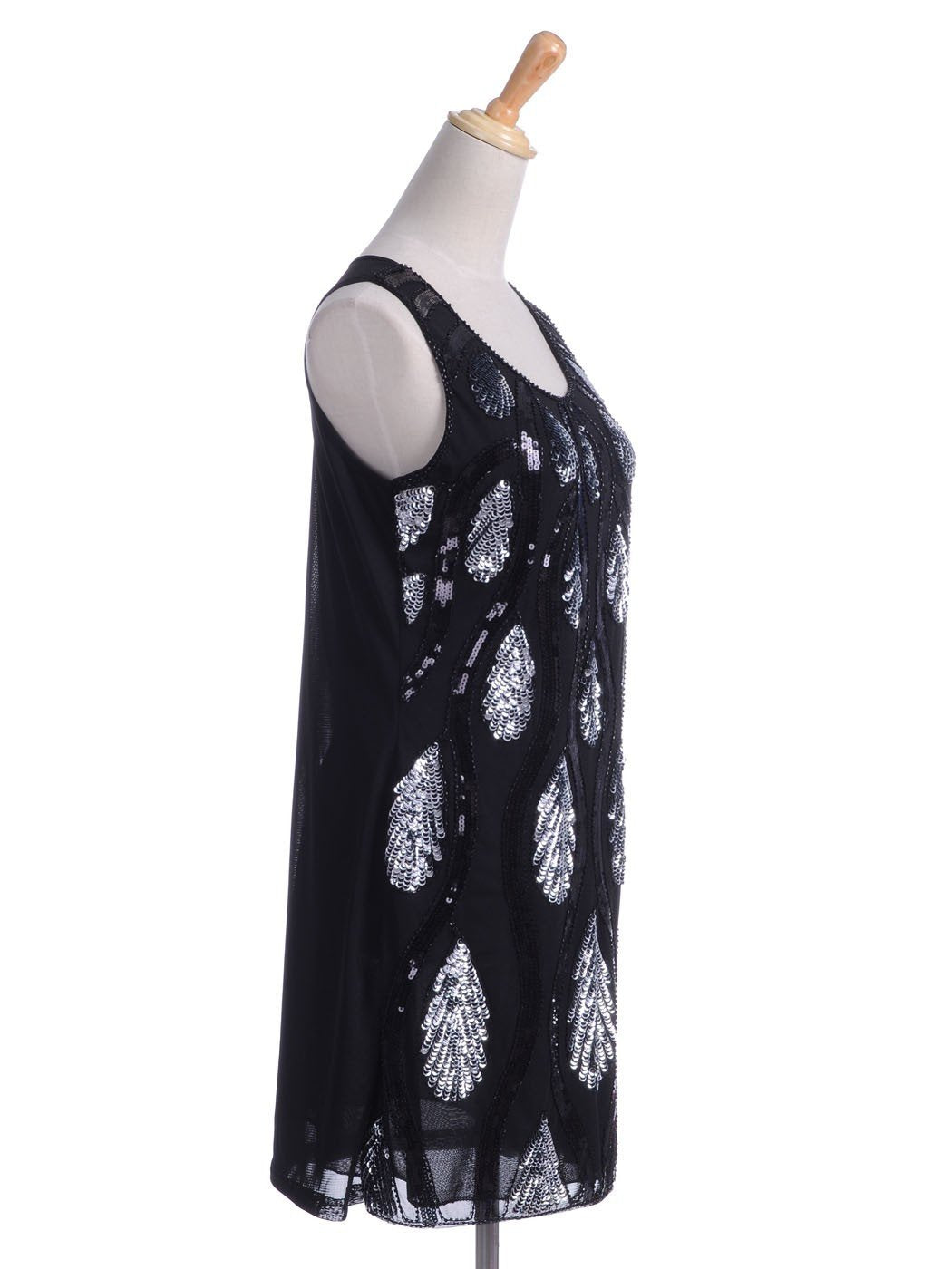- UNIQUE DESIGN - Dress featuring a crew neckline, sequin teardrop and wave designs, and lightweight solid panel in the back.