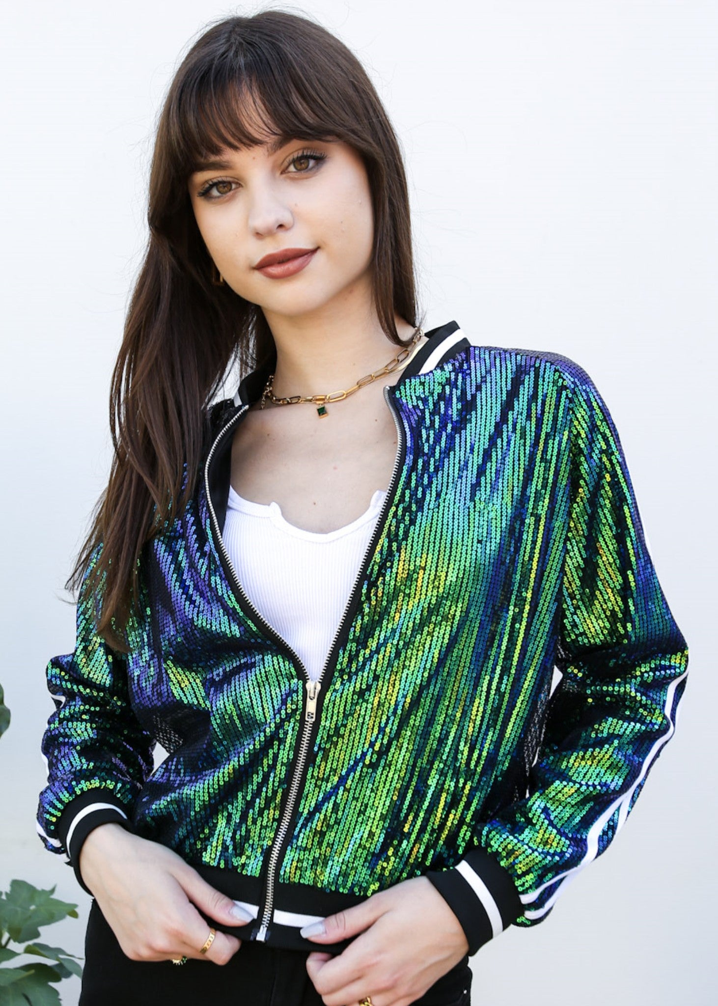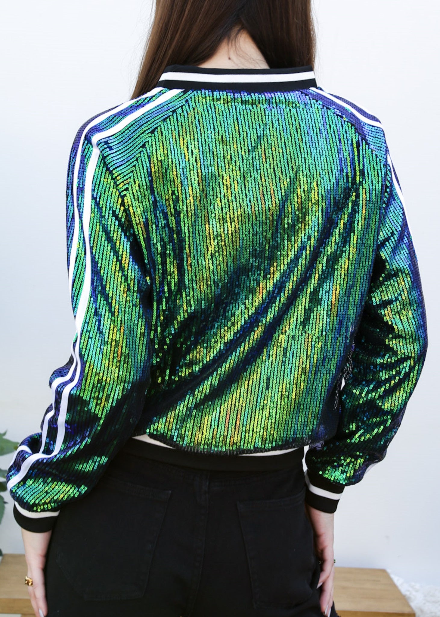 - DAZZLE THE CROWD - Be a total show stopper and standout with this gorgeous sequin varsity jacket. All eyes will be on you when you step outside. Be prepared to receive tons of compliments about your lush and shimmering jacket!