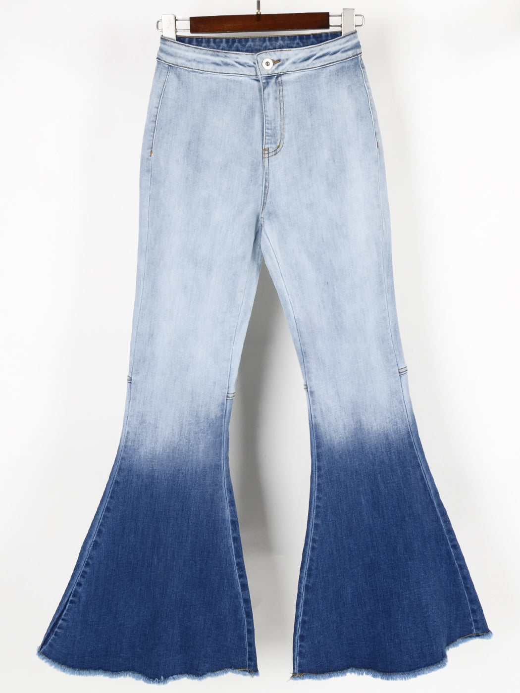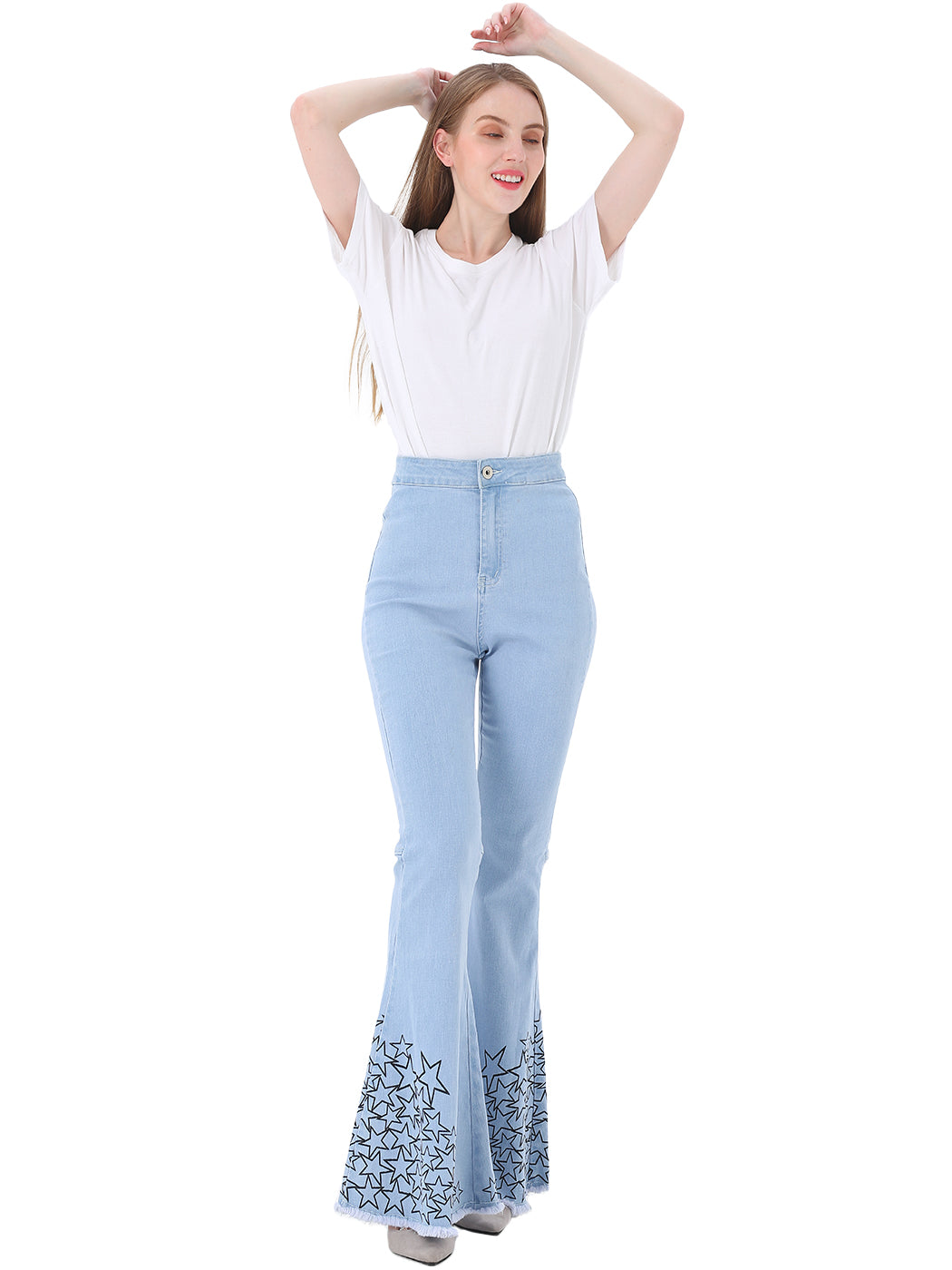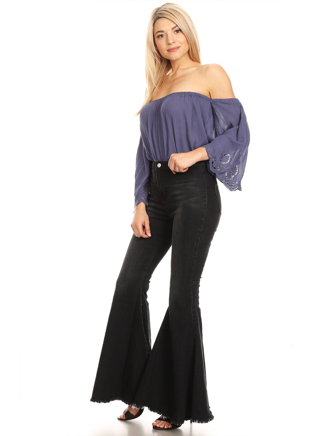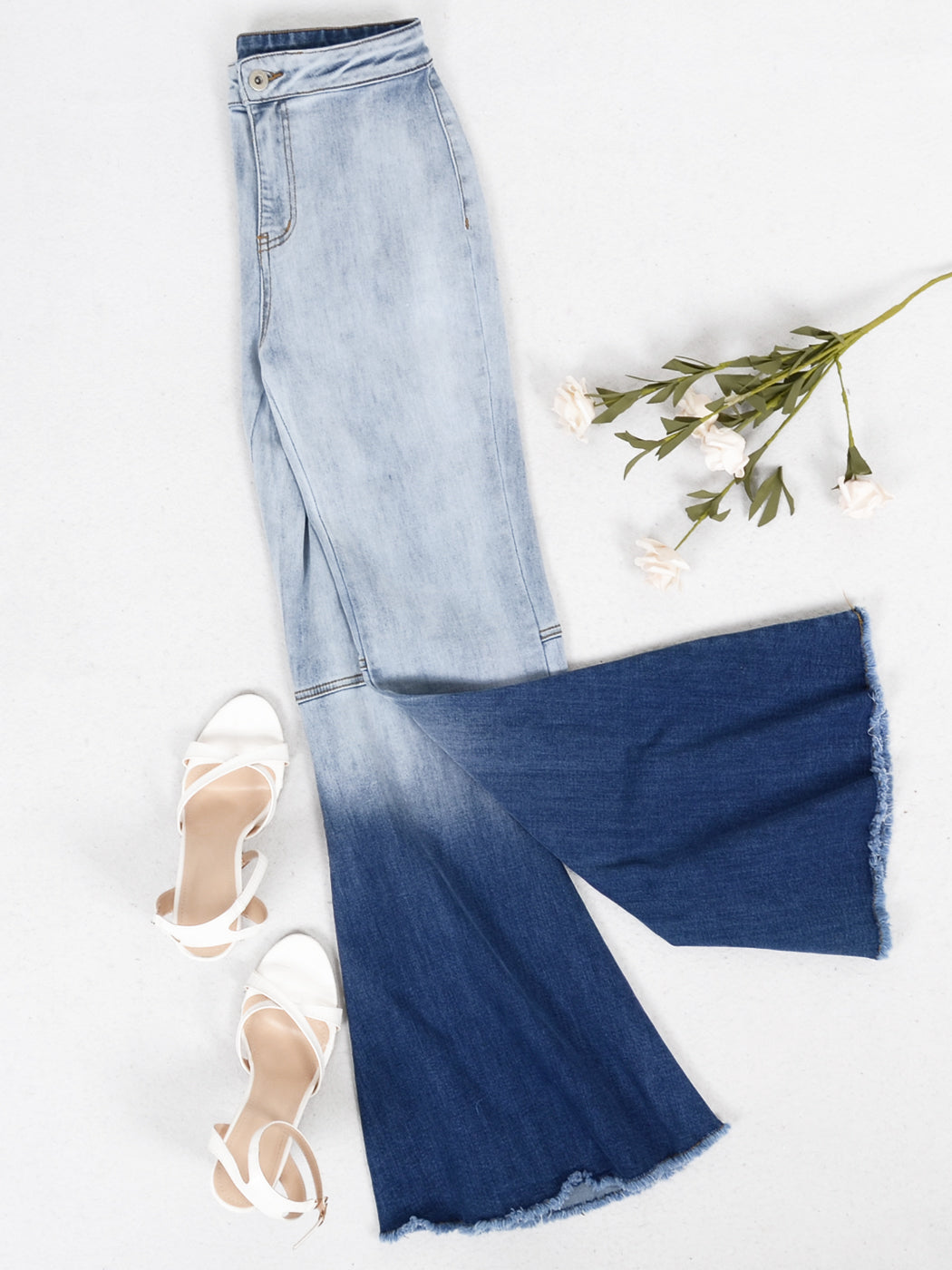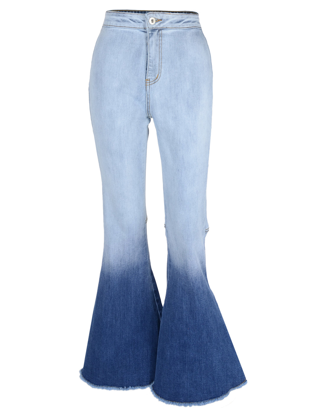 - RETRO, DETAILED BELL BOTTOMS. Amazing full length jeans that hug every curve perfectly, and show off your legs by making them appear longer. The bottom is a wide leg flare that is a relaxed fit. Does contain two back pockets and fraying at the bottoms hem.