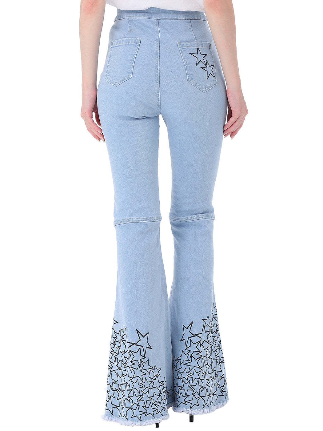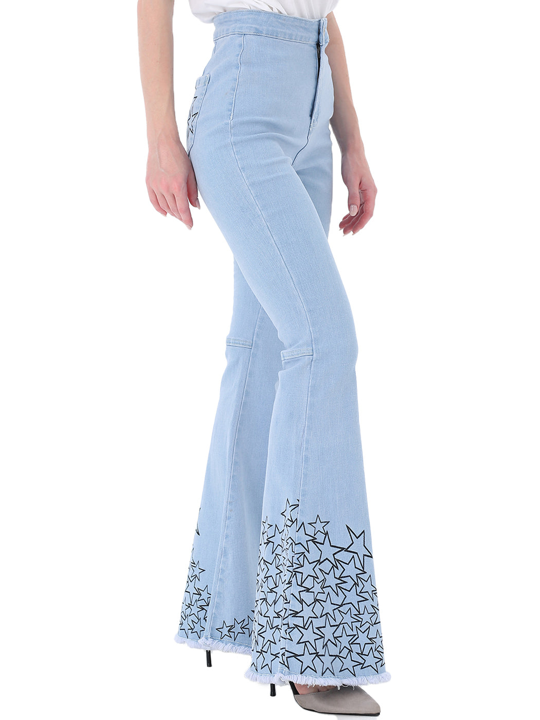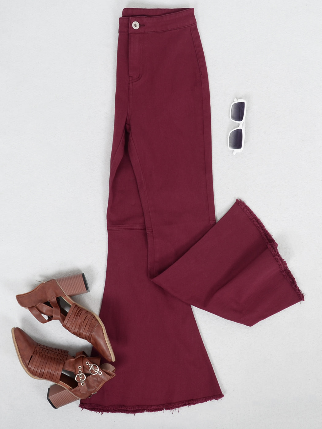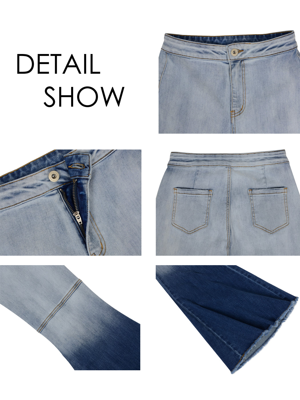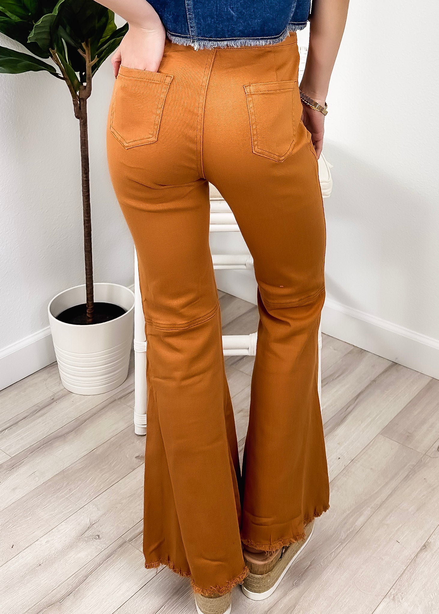 - RETRO, DETAILED BELL BOTTOMS. Amazing full length jeans that hug every curve perfectly, and show off your legs by making them appear longer. The bottom is a wide leg flare that is a relaxed fit. Does contain two back pockets and fraying at the bottoms hem.