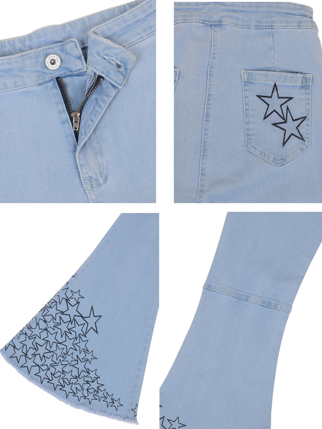 - STRETCHY, COMFORTABLE JEANS. Made of 75% cotton, 20% polyester, and 5% spandex these jeans are comfortable to wear all day long. these fashionable bell bottom wide leg style are stretchy, and breathable to wear, while also being durable.