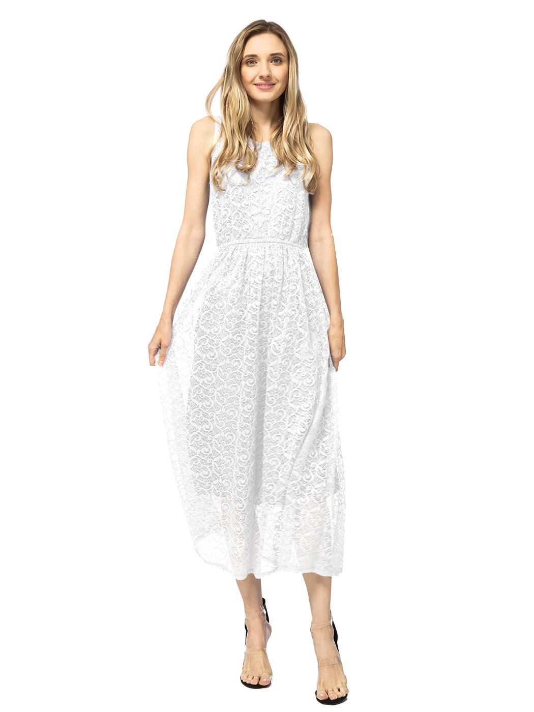 - ELEGANT LACE FLORAL - Full lace floral long dress with midi length lining, so it\'s not see through. Sleeveless and elastic high waist design, show your curvy figure.