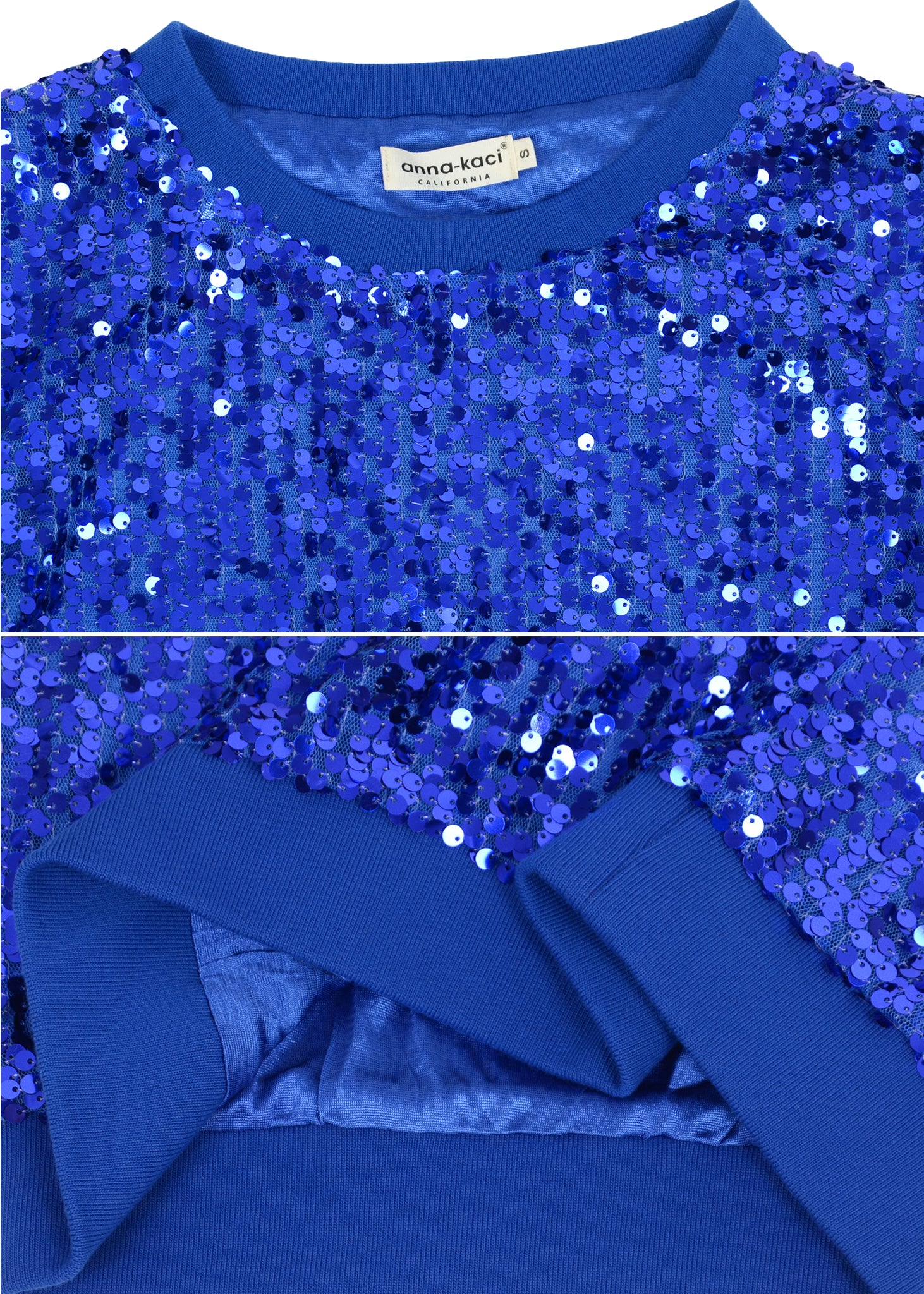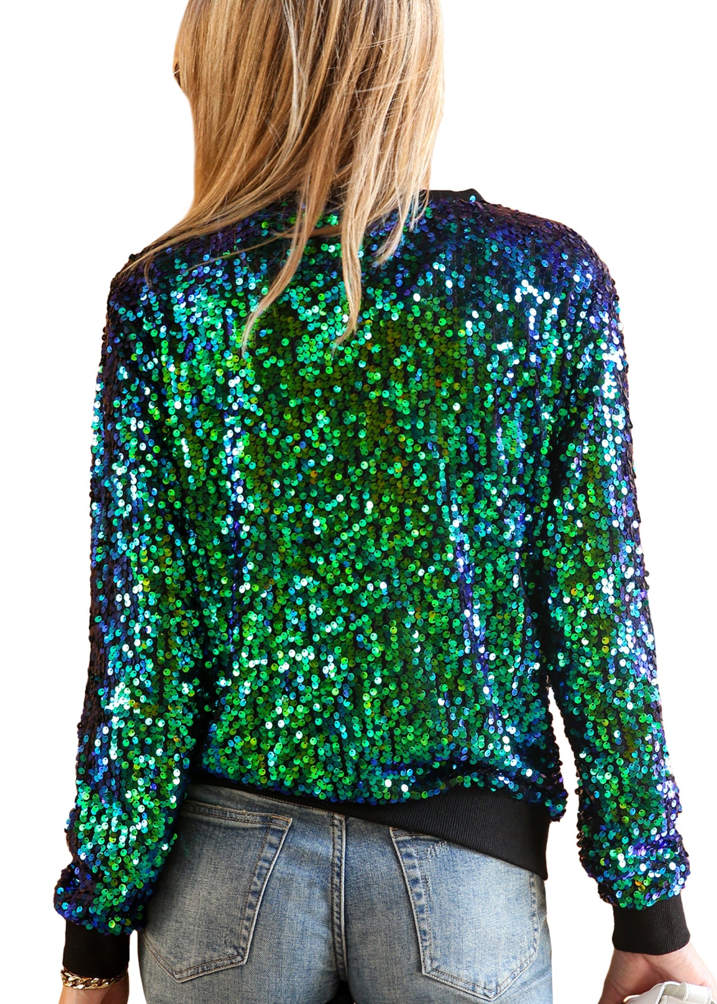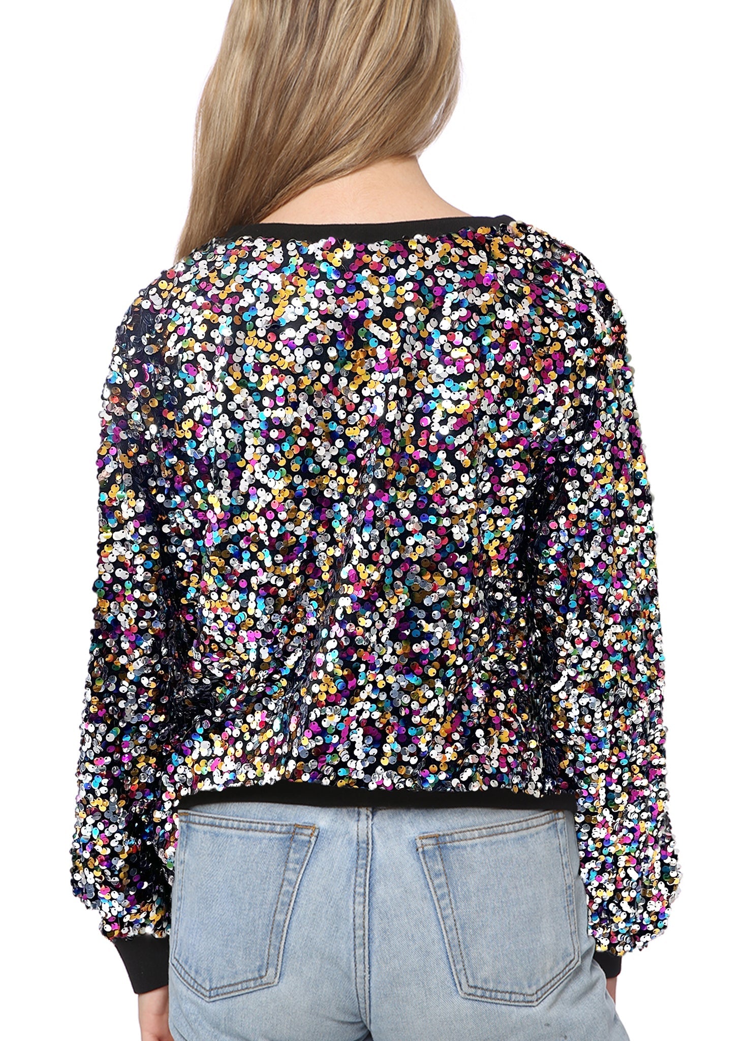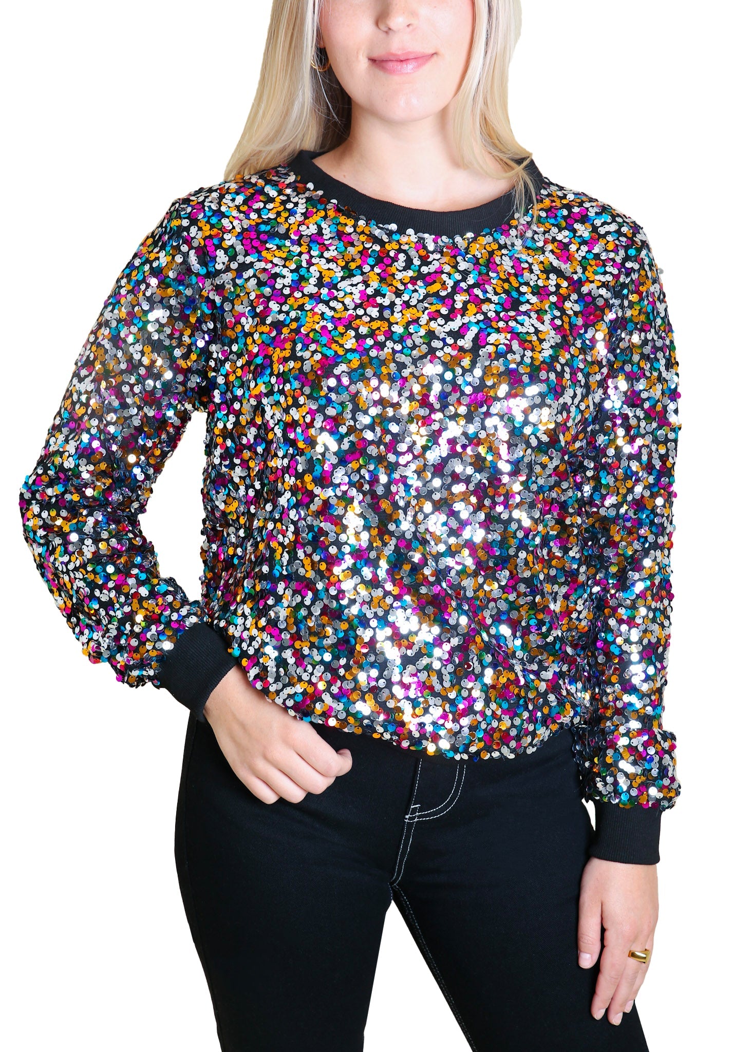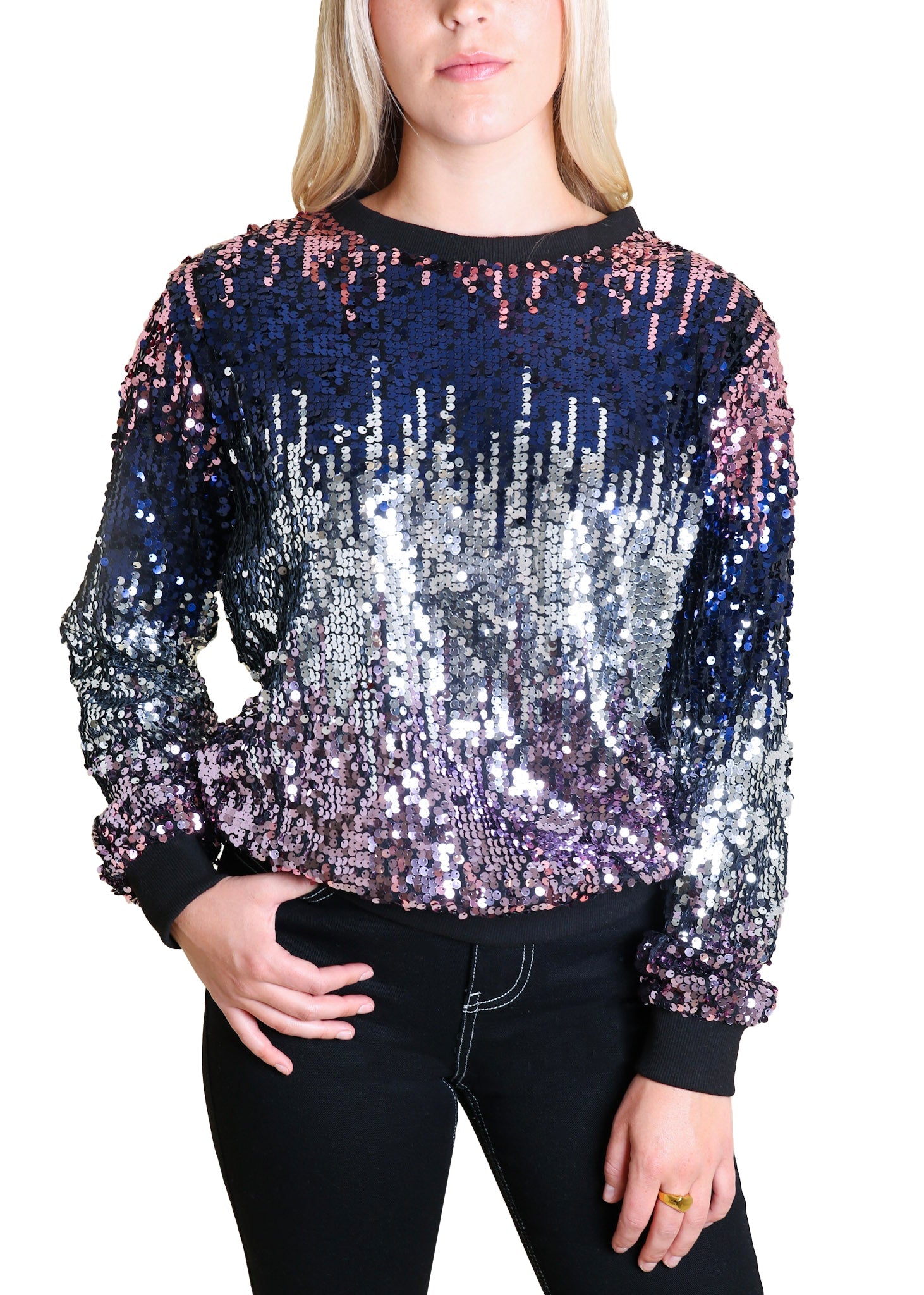 Sequin Sweatshirt Round Neck Top Long Sleeve Ribbed Cuffs Outerwear