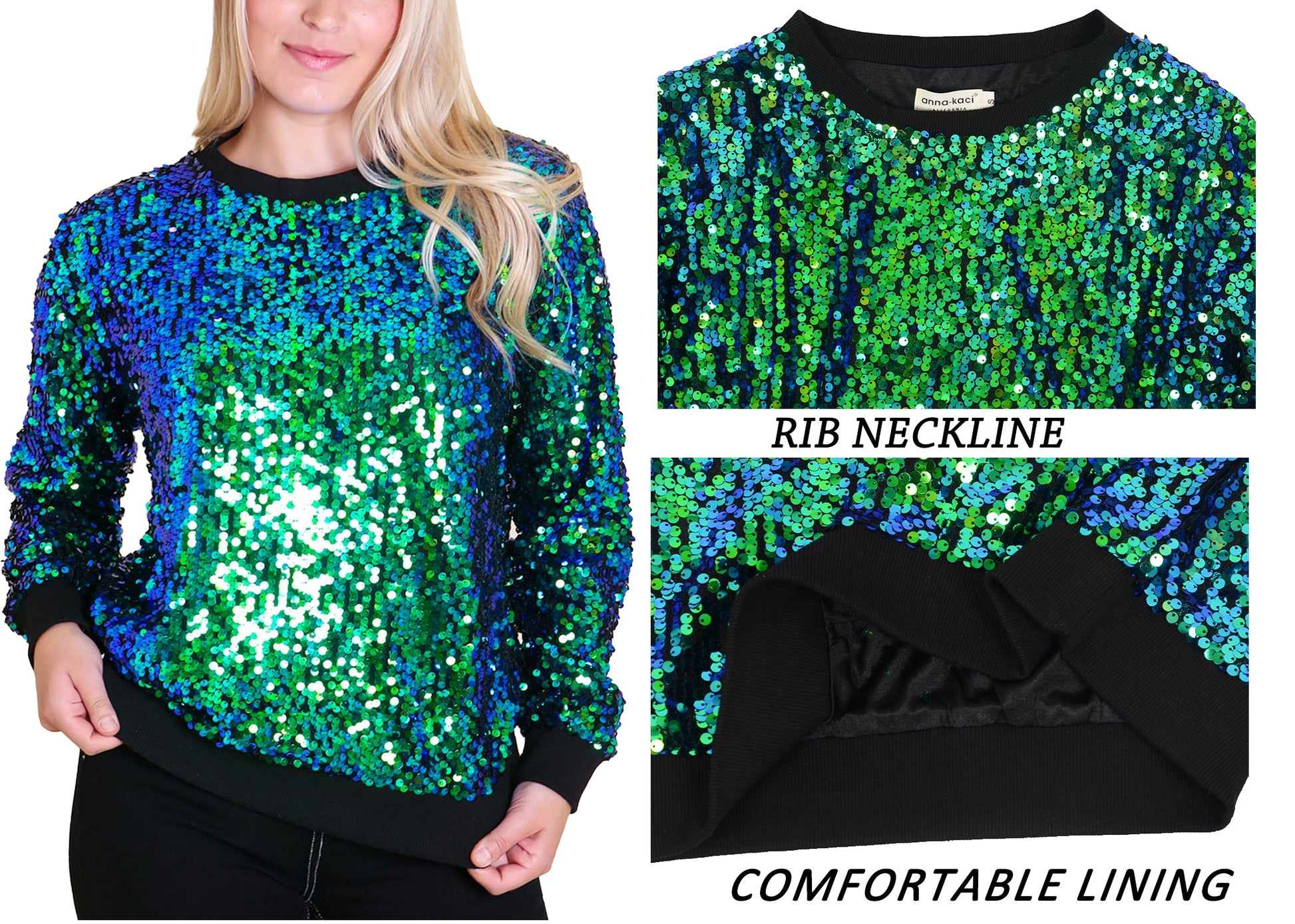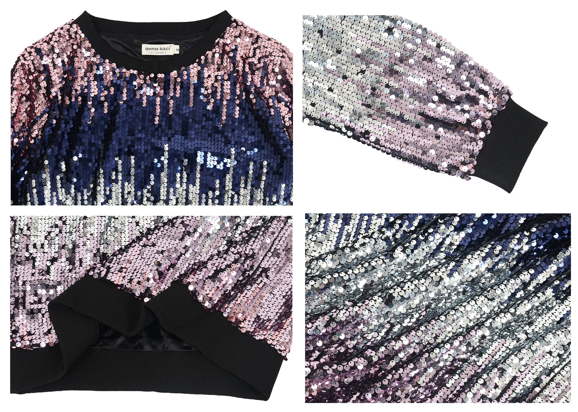 - DESIGN - Long Sleeve, Sequin, round crew neckline, cute and stylish, pair it with jeans, pants or skirts.