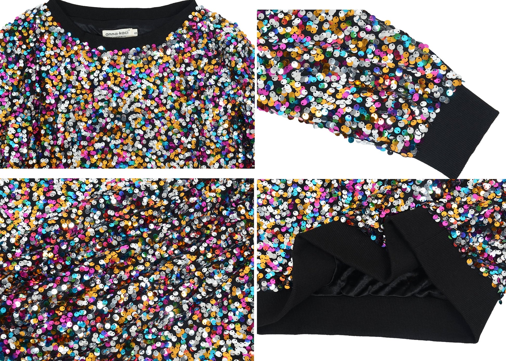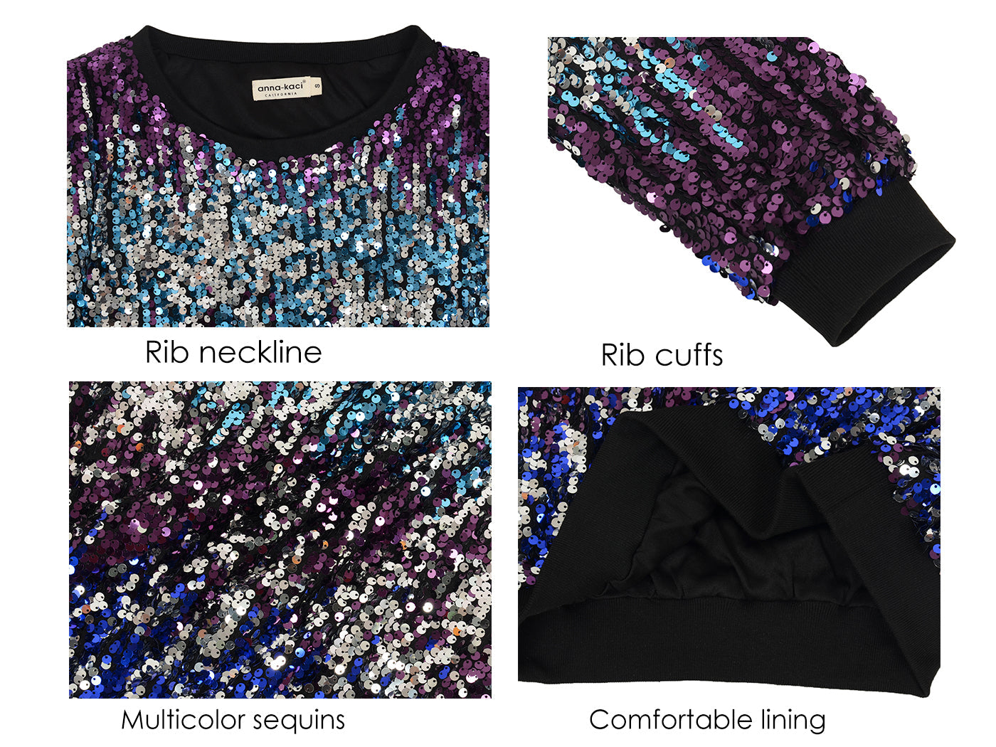 - MATERIAL - Sequin, stretchy fabric, comfy , soft and breathable, stretch ribbing, polyester.