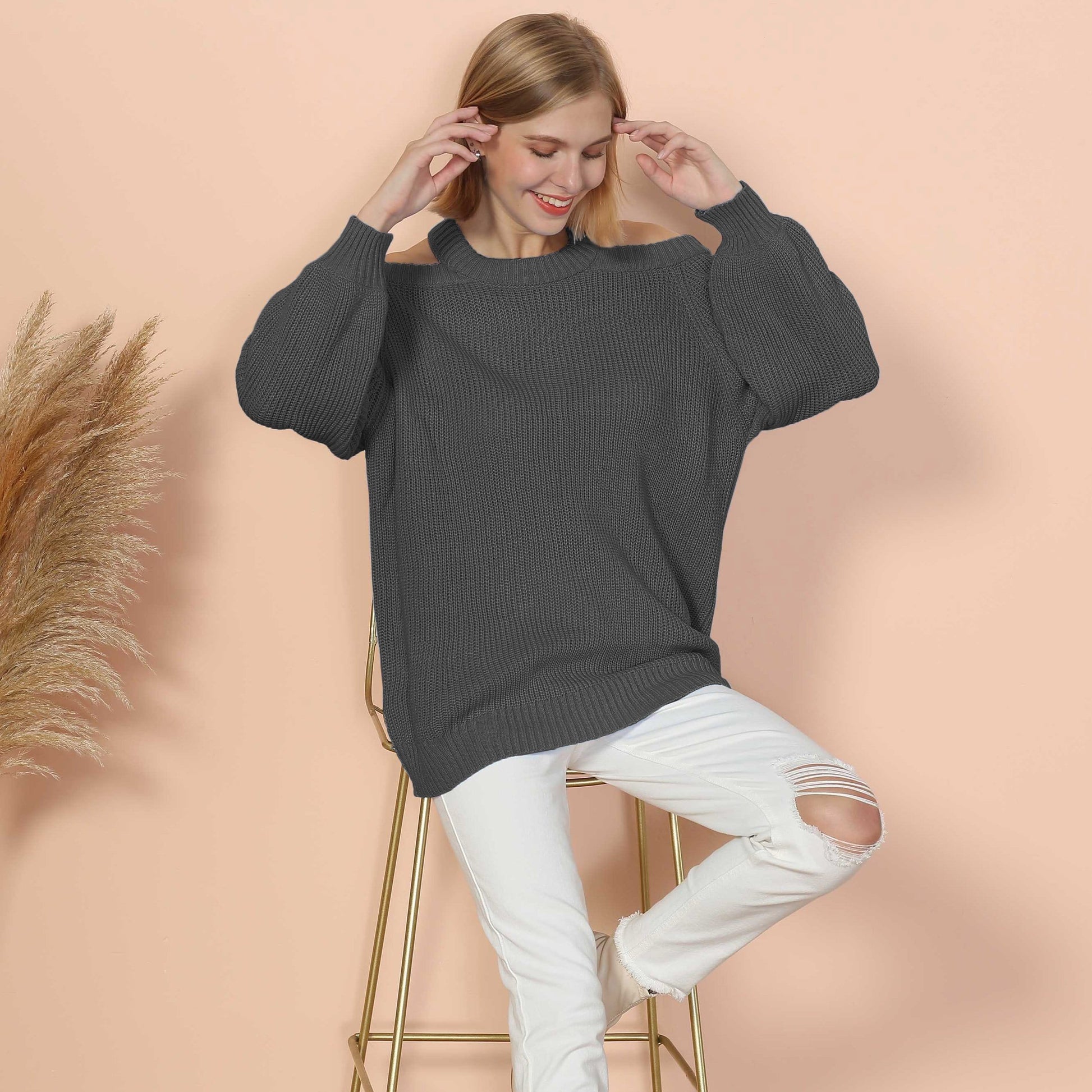 Our chic halter neck sweater elegantly combines a cozy knitted sweater with a chic cold shoulder and semi backless design. Curated with soft and plush knit textures with a relaxed oversized fit. Detailed with a halter neck with ribbed trim lines that transition into the cold shoulder and semi backless design of the sweater. Topped off with cute lantern long sleeves for a comfy casual look. It's a fantastic balanced fall sweater that offers you flirty elegant details while maintaining the warmth & coziness you need.