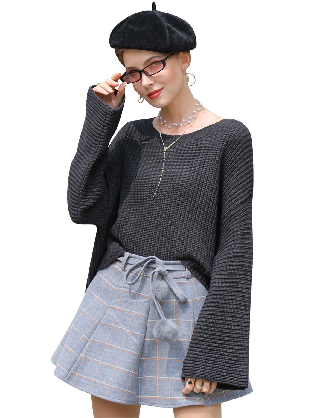 - Features. Crew neck, solid color, bell sleeves, long sleeve cozy tunic, loose fit. Casual and elegant, perfect to match your jeans and shorts.