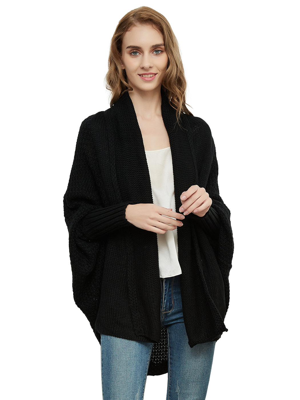 Women Batwing Sleeve Sweater Open Front Kimono Oversized Wrap Cardigan