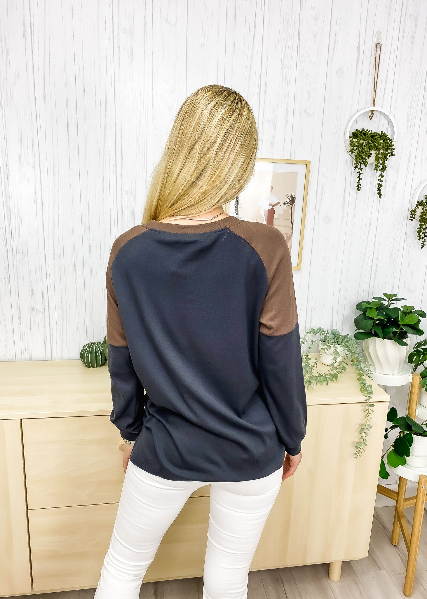 - Long sleeve, crewneck sweatshirt, color block tunic top, side slit, raglan shirts.