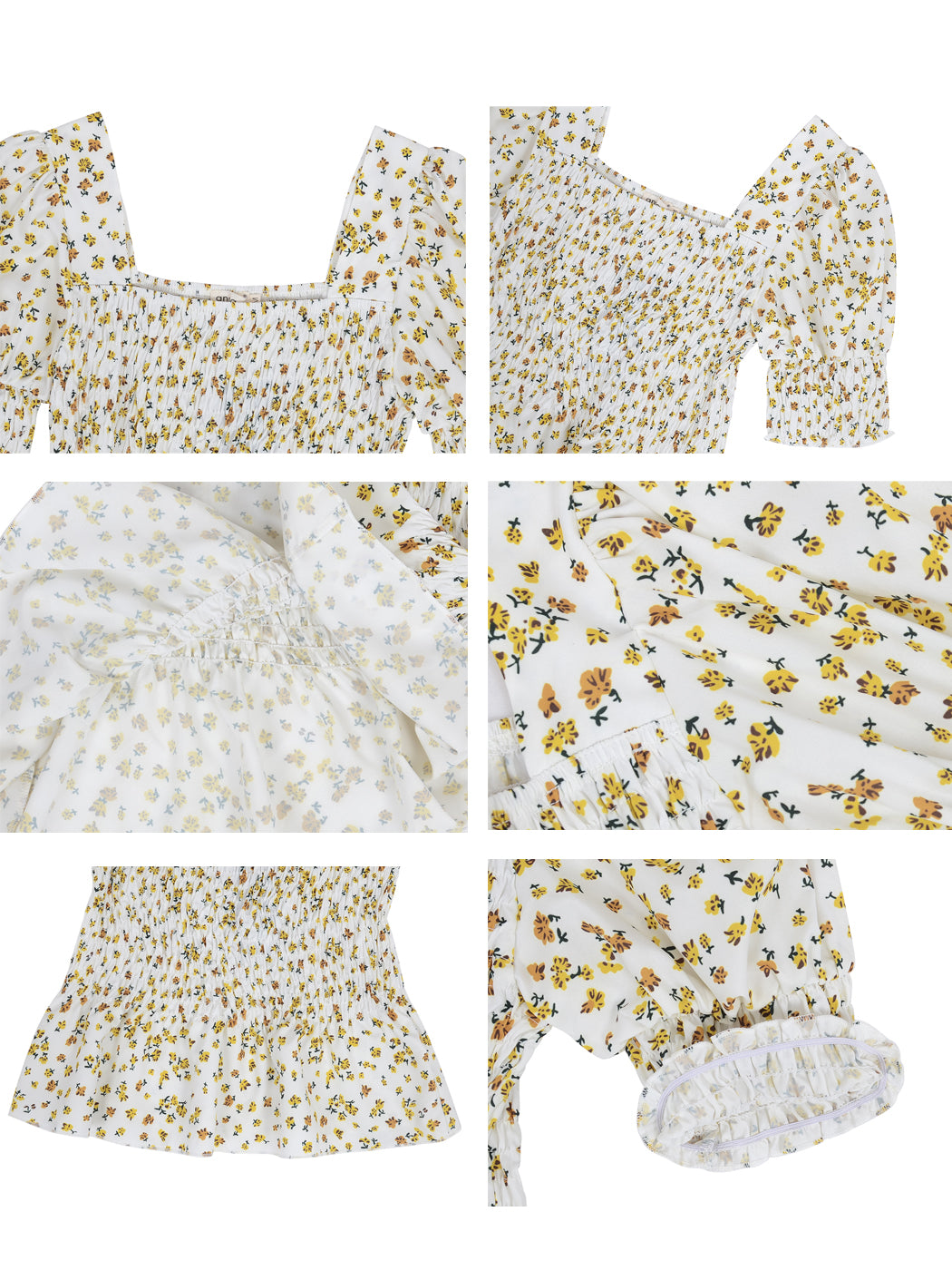 Anna-Kaci Women Ruffle Sleeve Smocked Square Neck Puffy Print Top